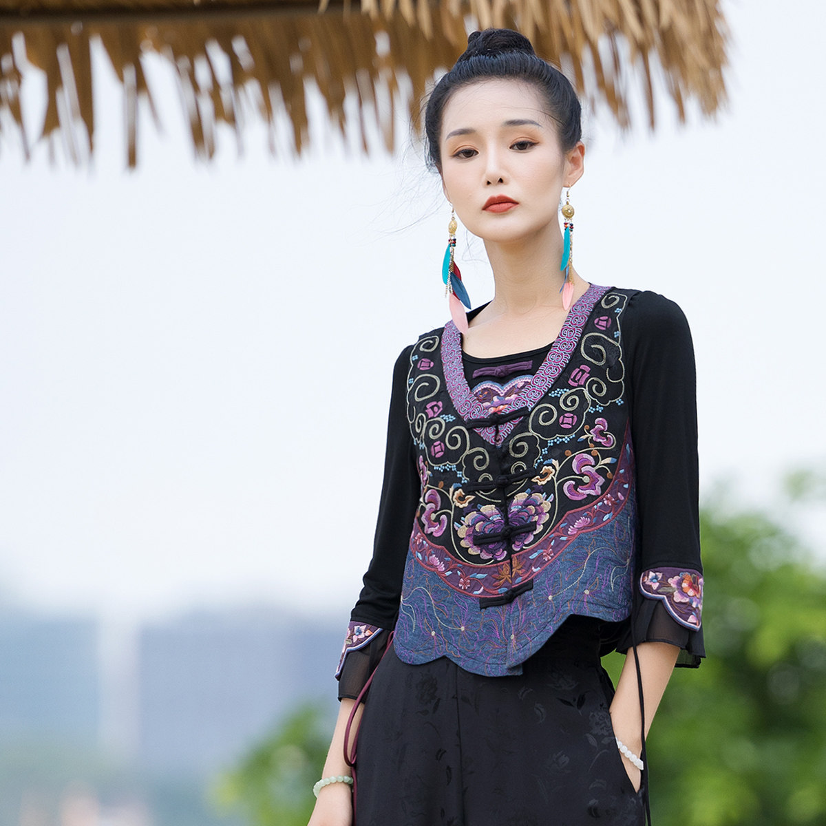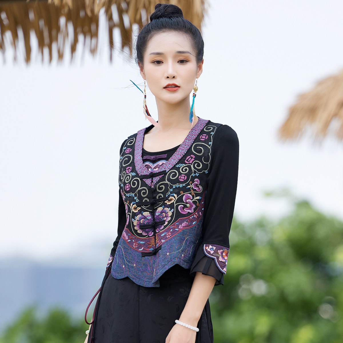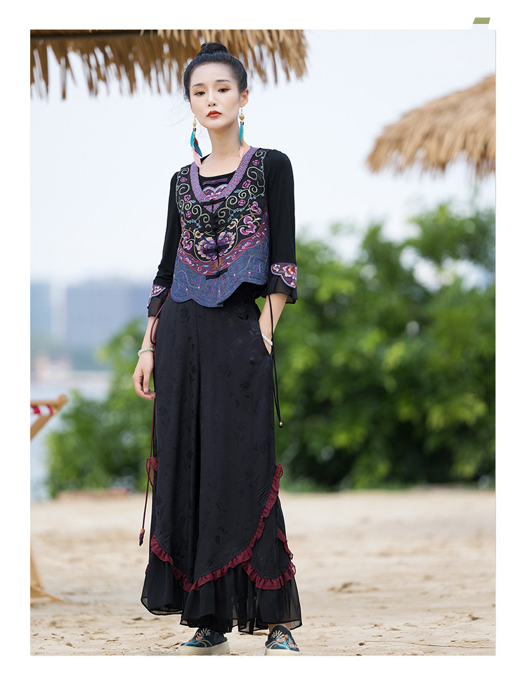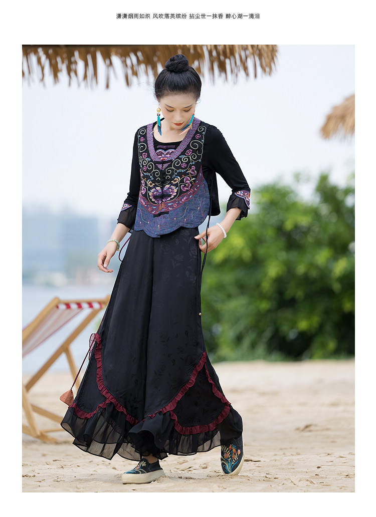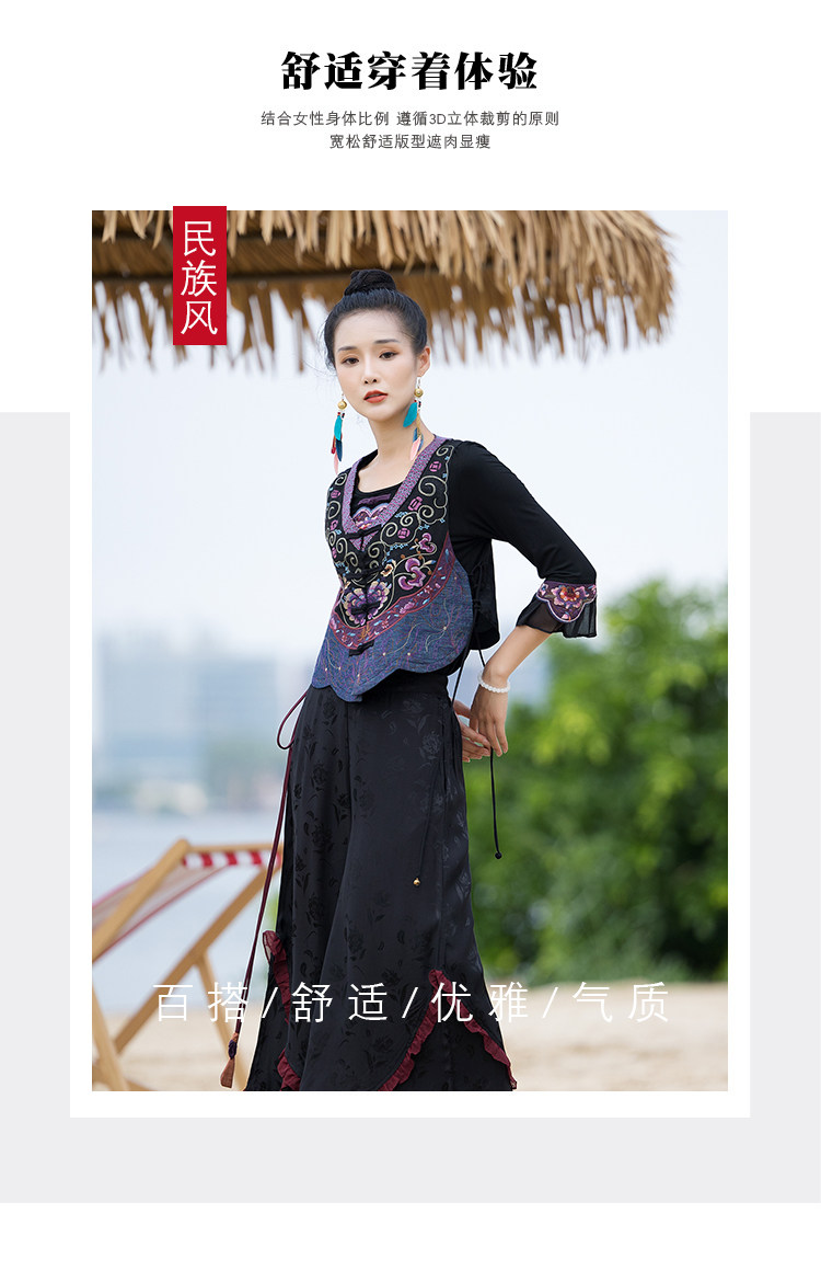 Новая женская национальная вышивка цветы, лепестки веревки, контрастные цвета, личностные самолеты, атласный жилет