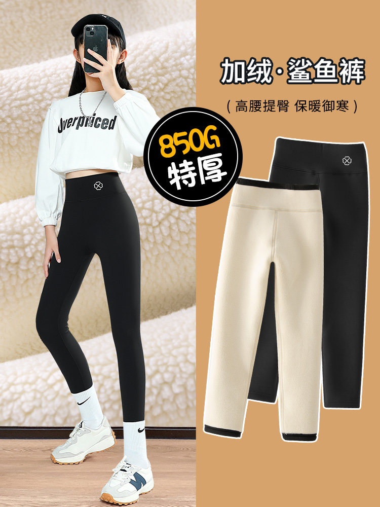 Удерживающие тепло штаны, детские зимние леггинсы, акула, увеличенная толщина, подходят для подростков