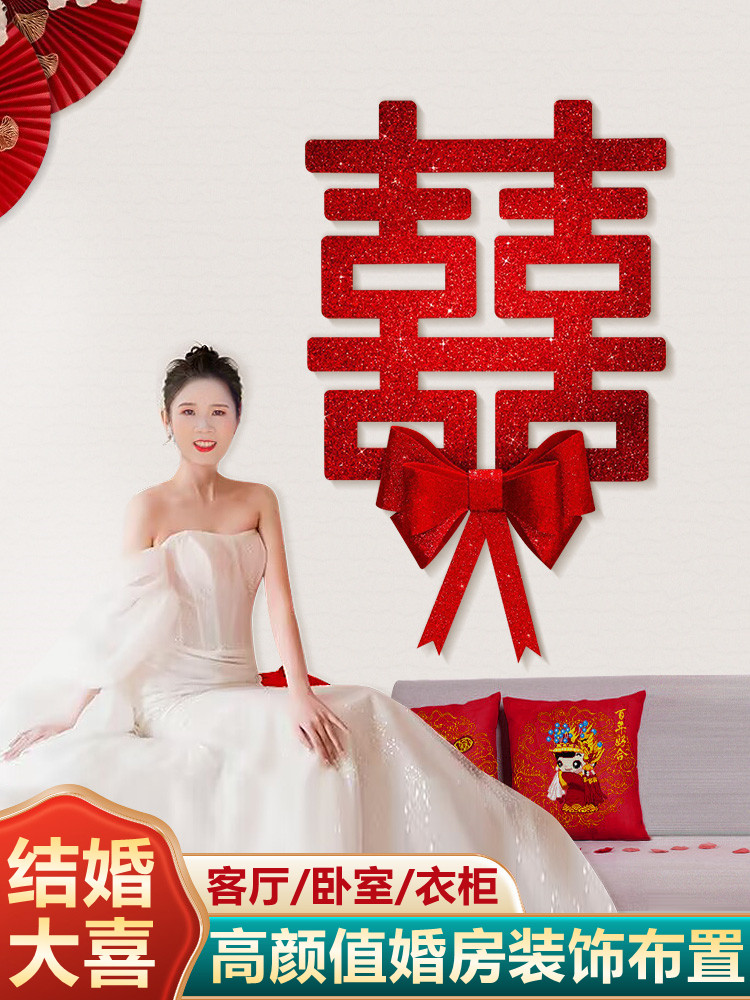 Super Daxi галстук свадебный свадебный номер для свадебных свадеб 囍 囍 囍 Flash Powder Living Room Стена Свадьба Свадебные принадлежности