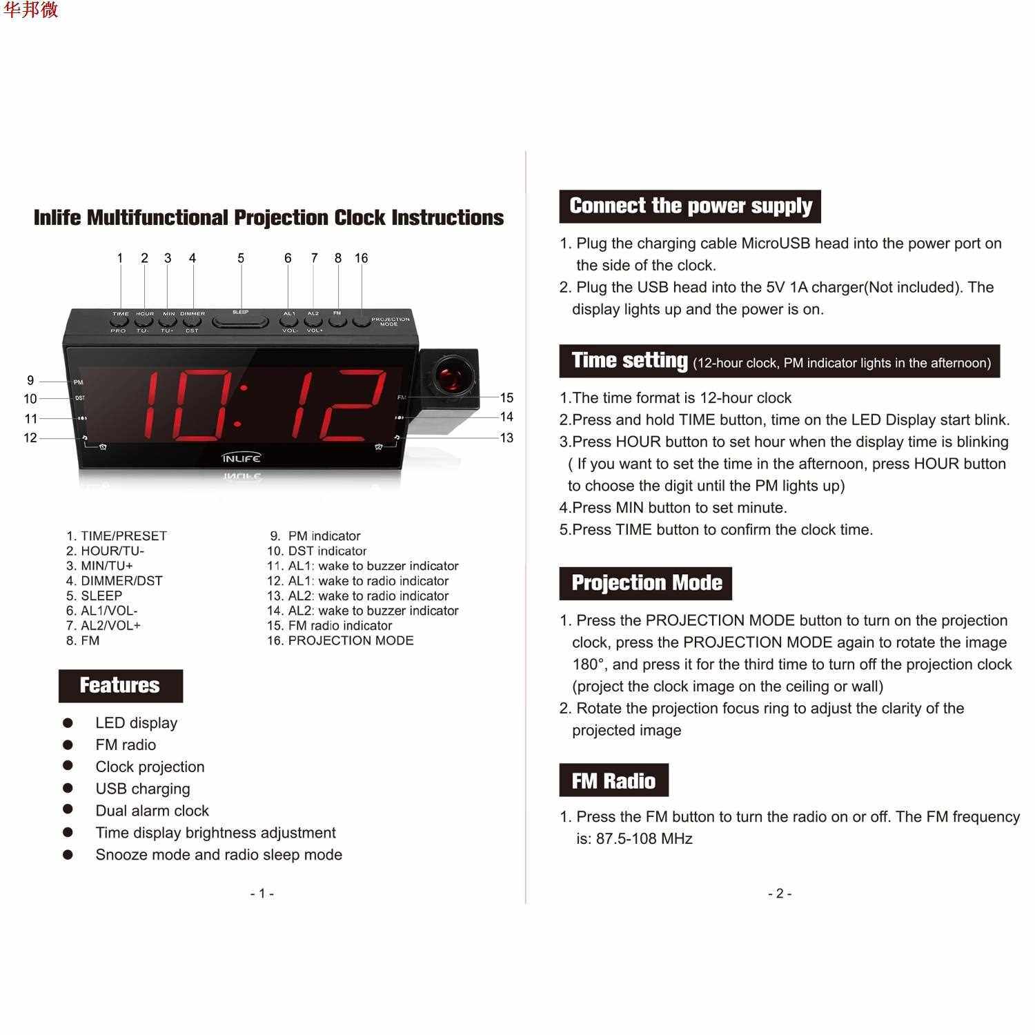 Snooze-horloge Projectur Numérique | Minuterie, Temp