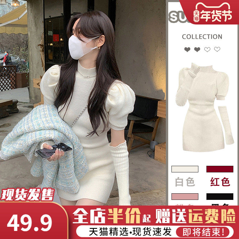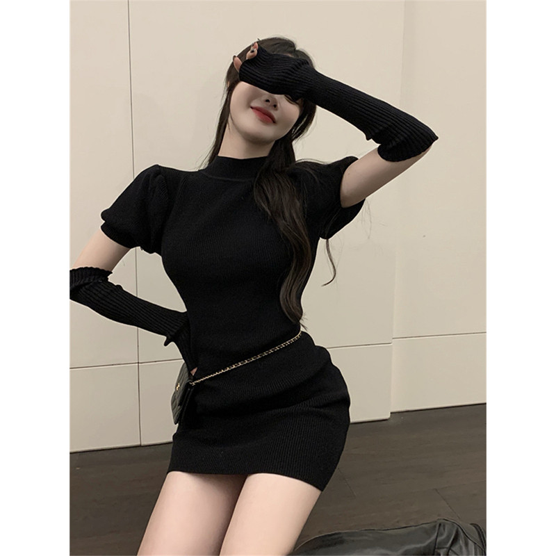 Весенние белые цветные сексуальные трикотажные нарукавники, свитер, платье, летняя мини-юбка, с акцентом на бедрах