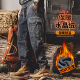 Ретро осенние штаны, утепленные джинсы с начесом, в американском стиле, оверсайз