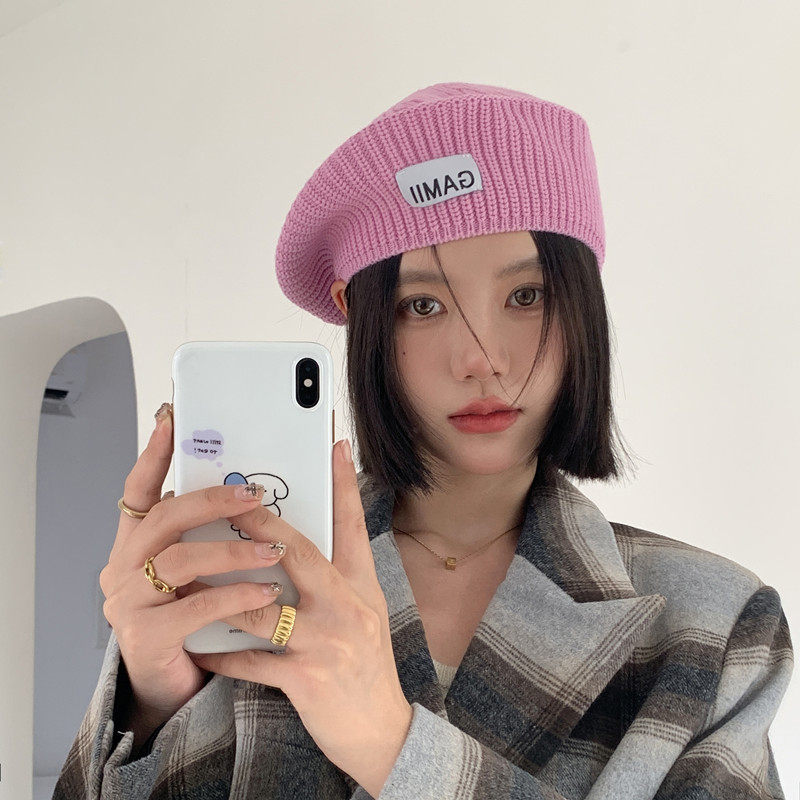 Демисезонный трикотажный модный японский милый универсальный берет, в западном стиле