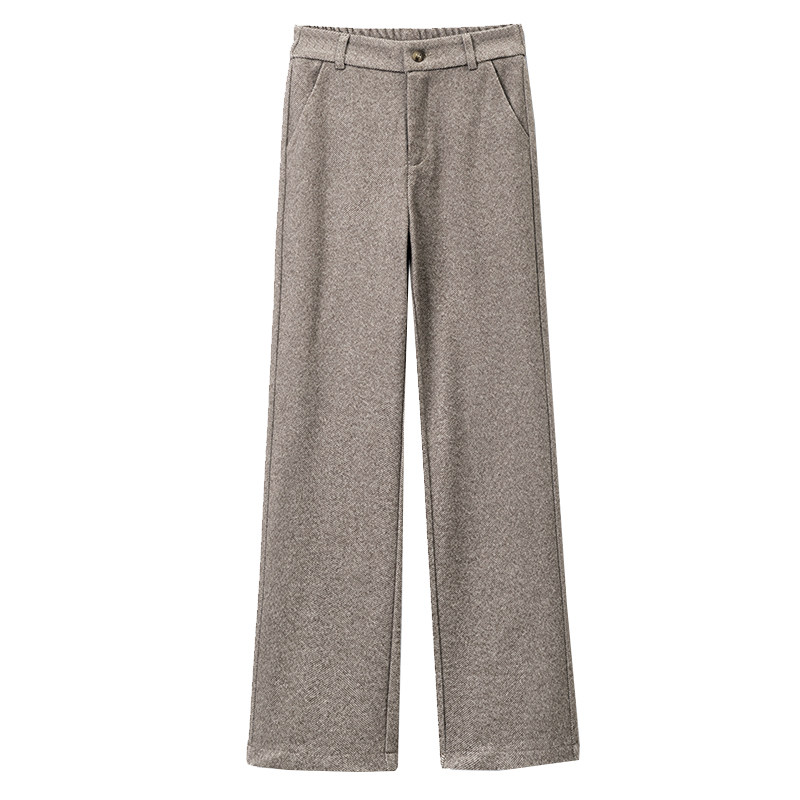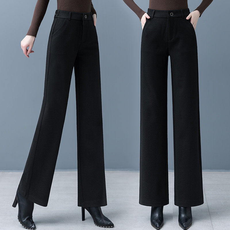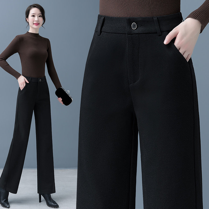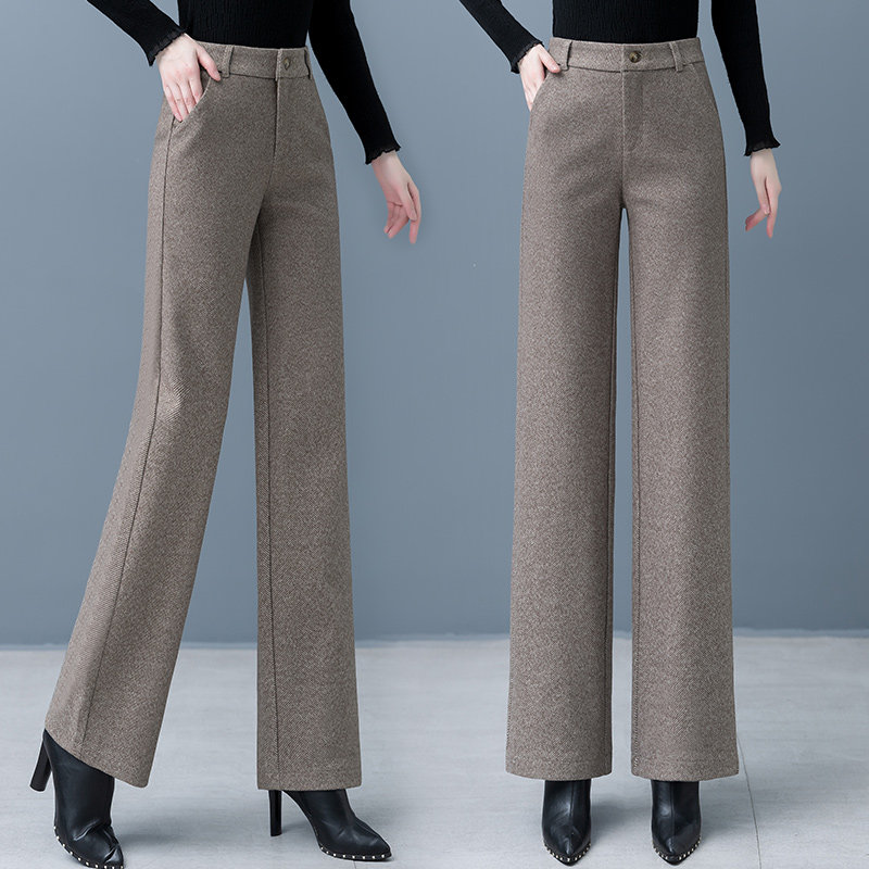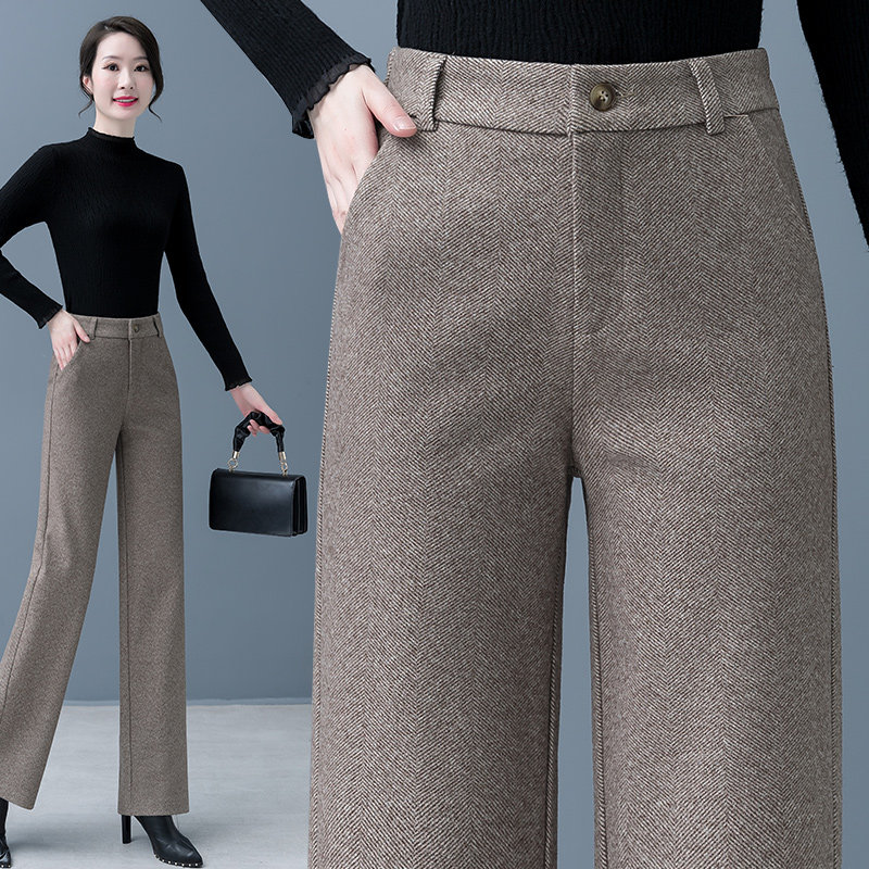 Шерстяные демисезонные штаны, флисовые зимние повседневные брюки для отдыха, высокая талия, свободный прямой крой