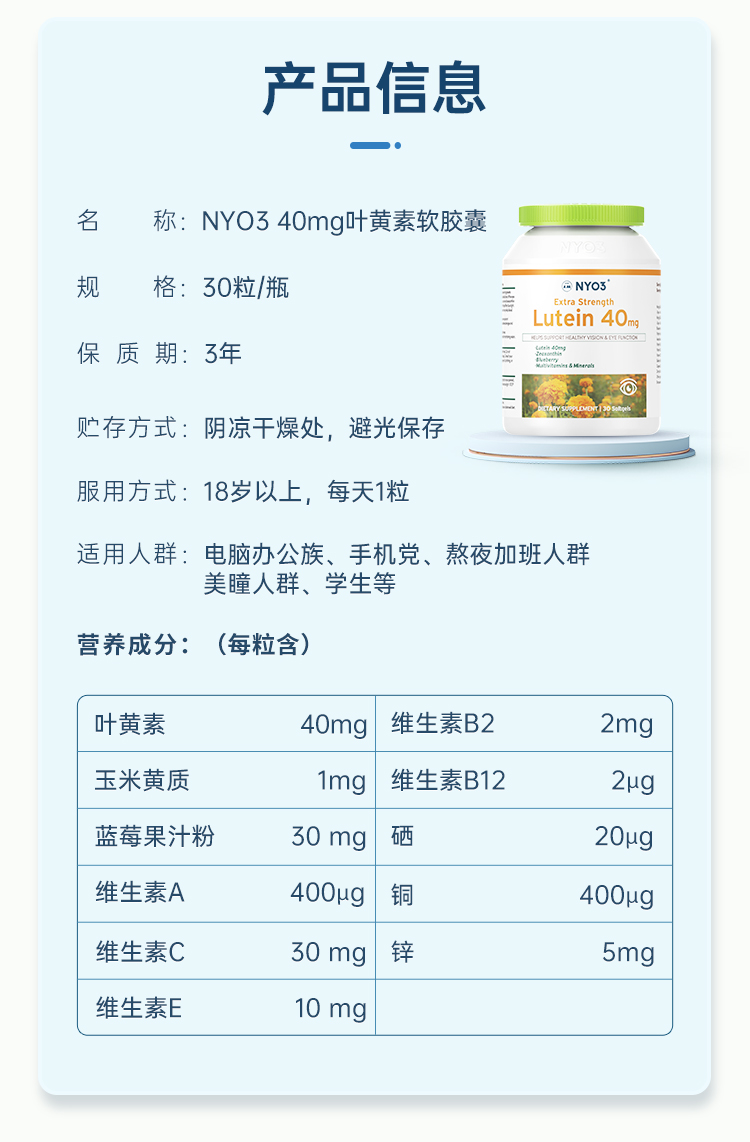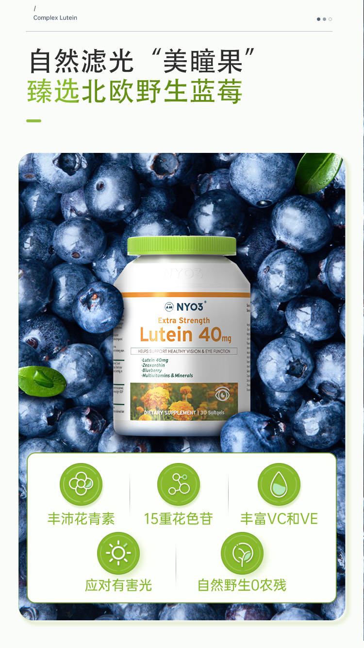 NYO3 Blueberry Lutein Lutein Geatch Protect Tabsule Capsule Health Products 40 мг импортированные патентные патенты для взрослых Аутентичный официальный флагманский магазин