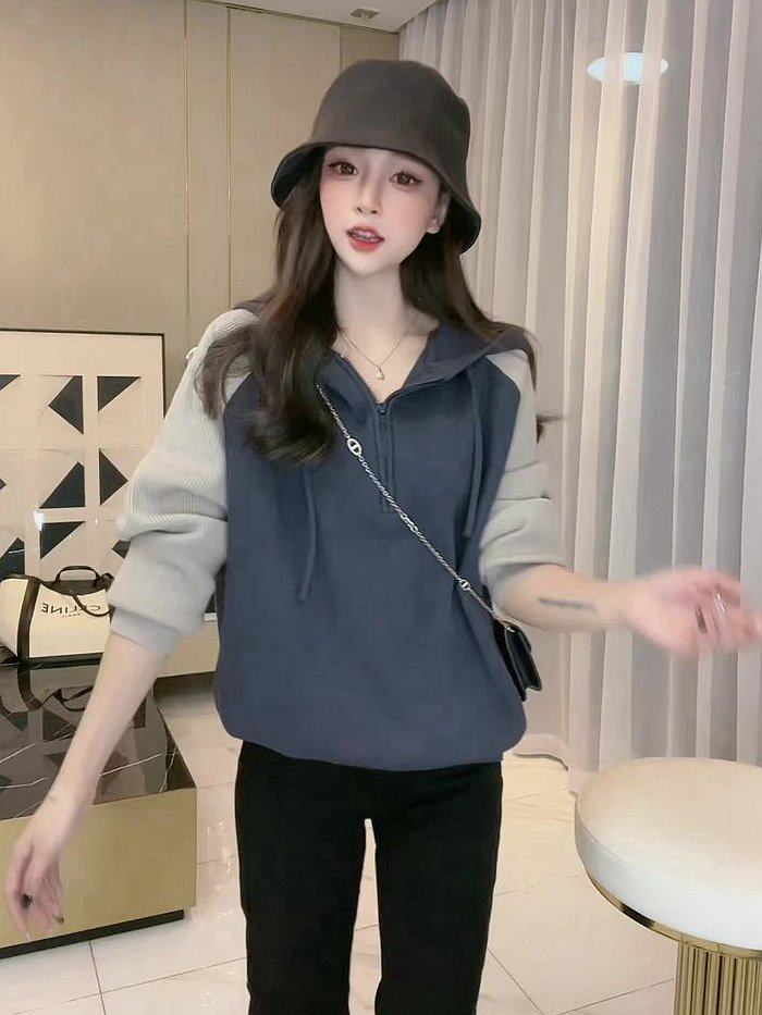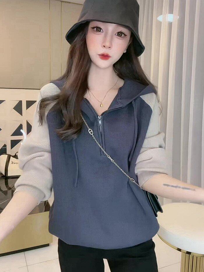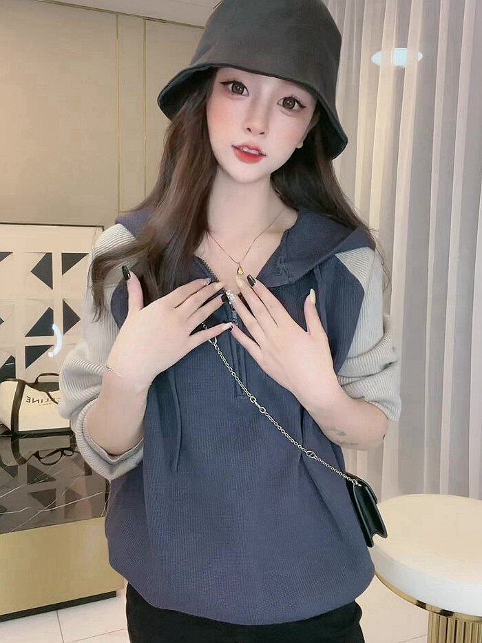Трикотажный демисезонный свитер для отдыха с капюшоном, лонгслив, в корейском стиле, в западном стиле, свободный крой