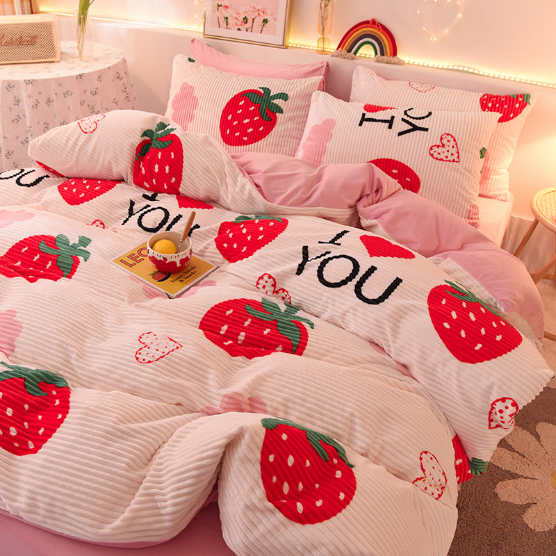 Фланелевый зимний комплект, двусторонний утепленный пододеяльник, простыня, 4 предмета