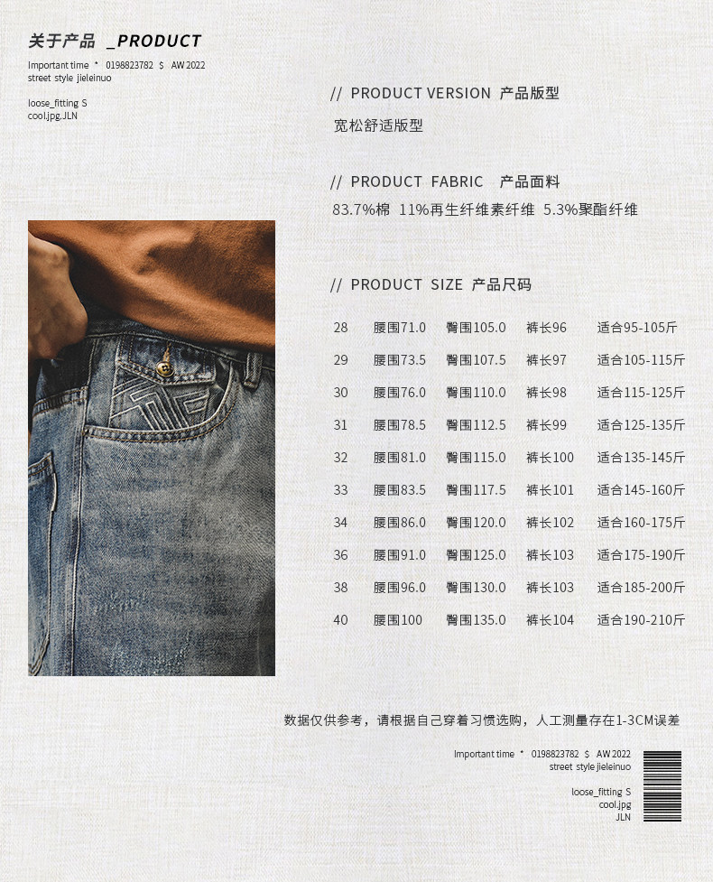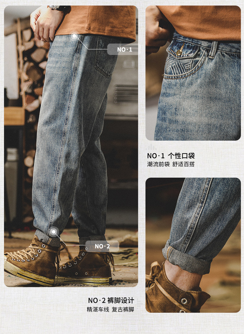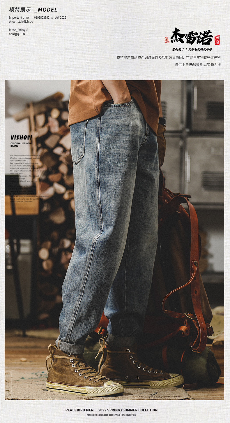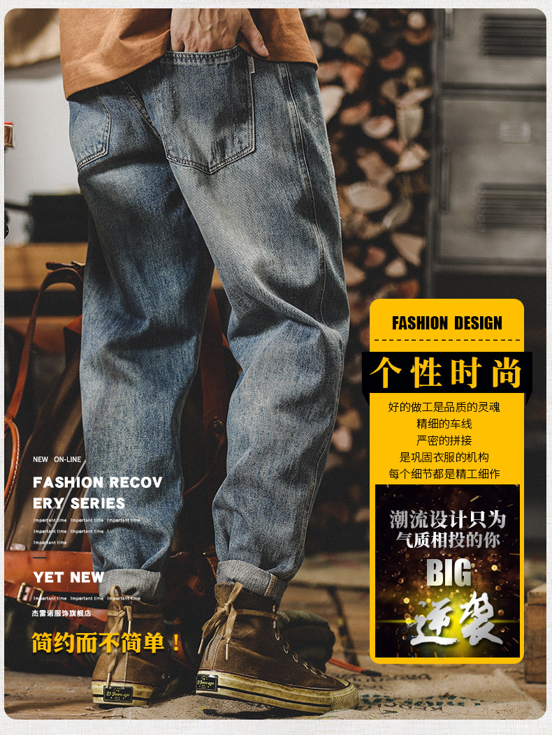杰雷诺 Ретро классические осенние джинсы, штаны, в американском стиле, 2024 года, свободный прямой крой, оверсайз