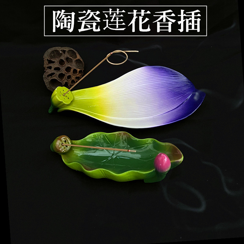 Мингин буддийская мебель домашняя керамическая лотосовая нить ладан вставка сандаловая нить нить горелка Внутреннее исследование Лотос лежащий в подарочной коробке с горелкой ладан