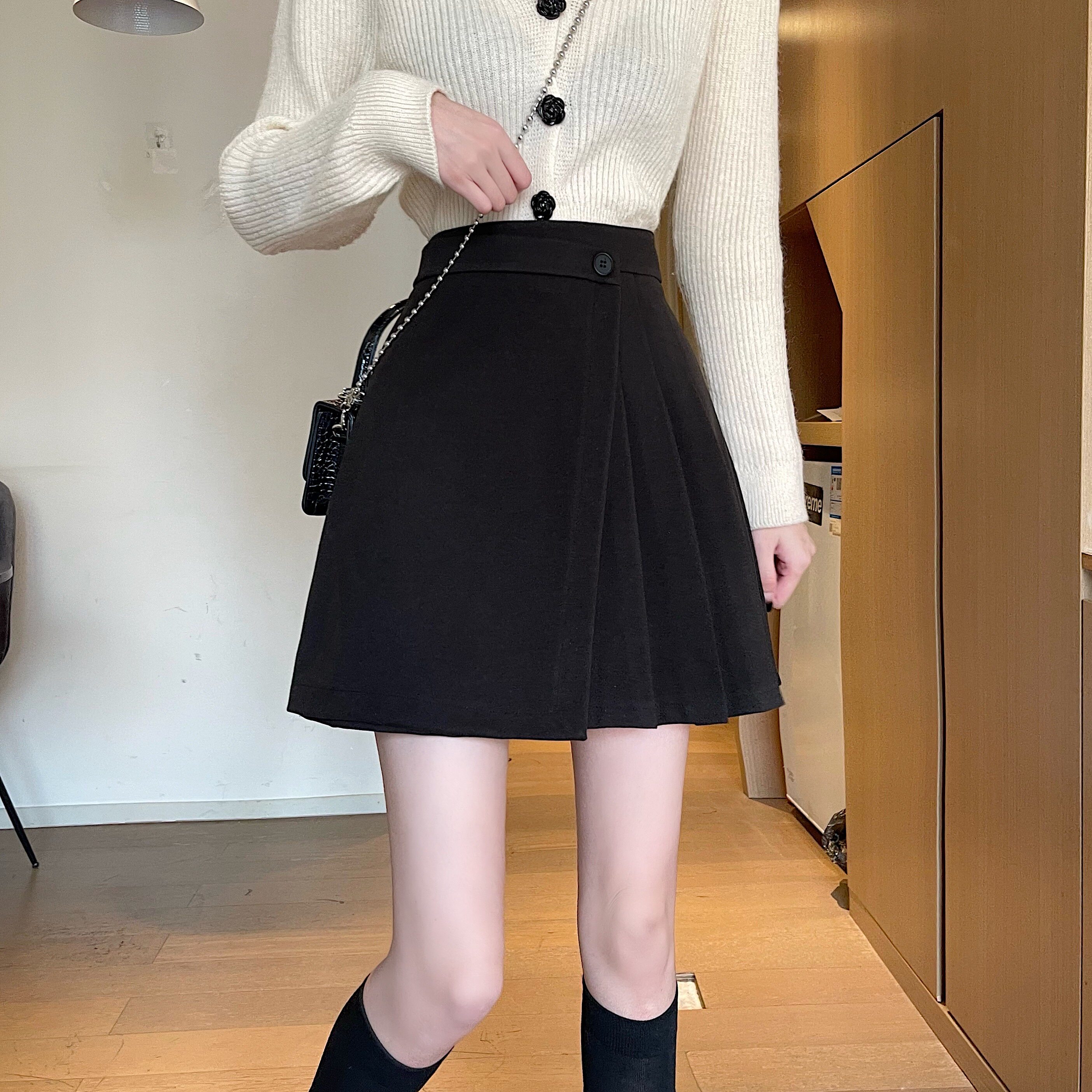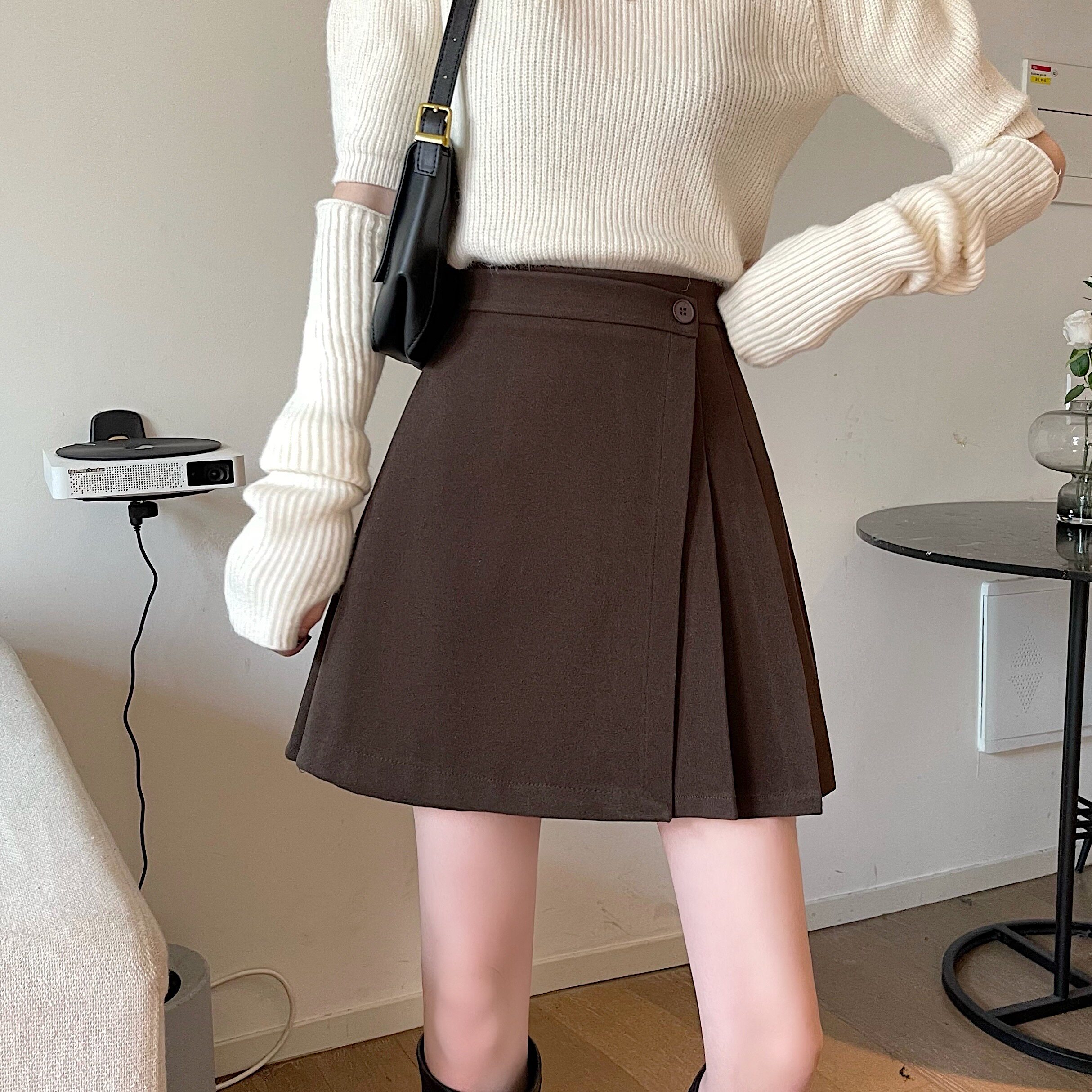 Осенняя юбка в складку, шерстяная цветная приталенная мини-юбка, большой размер, высокая талия, А-силуэт