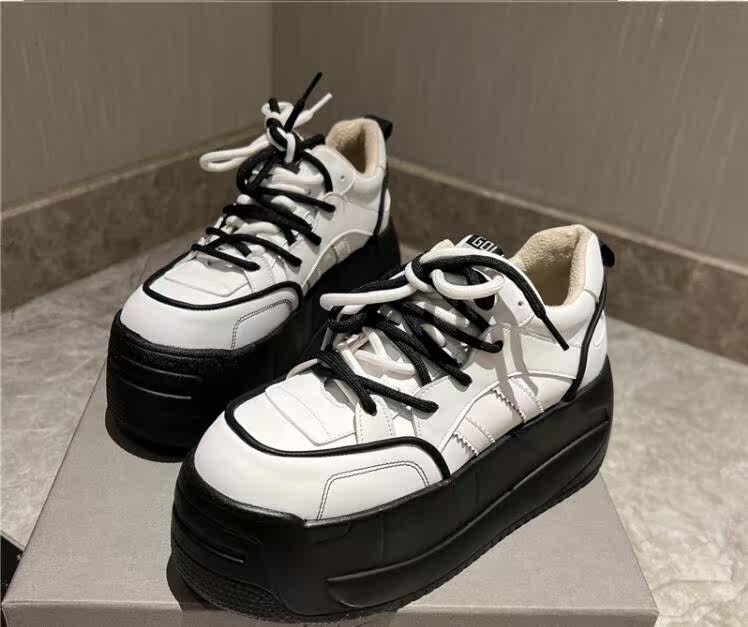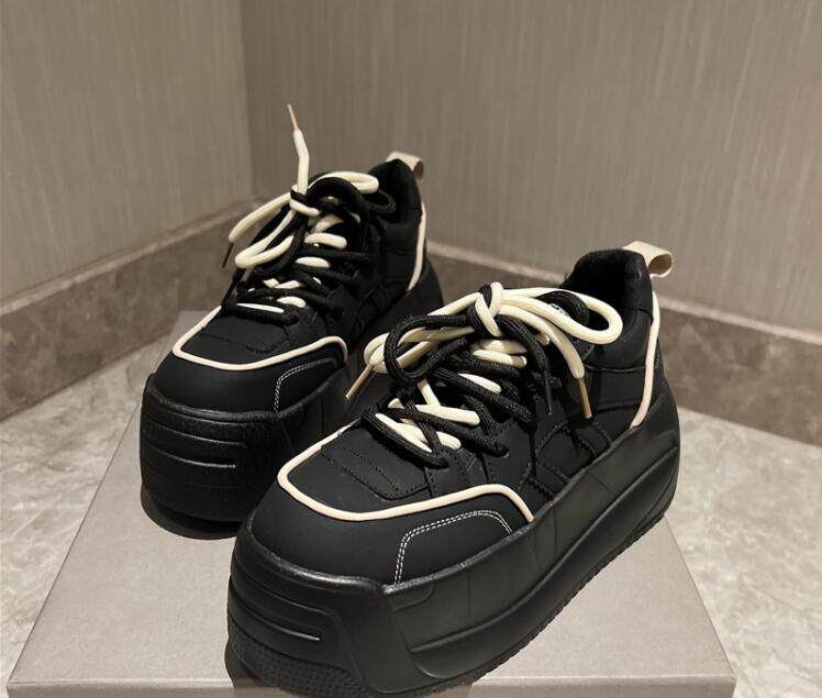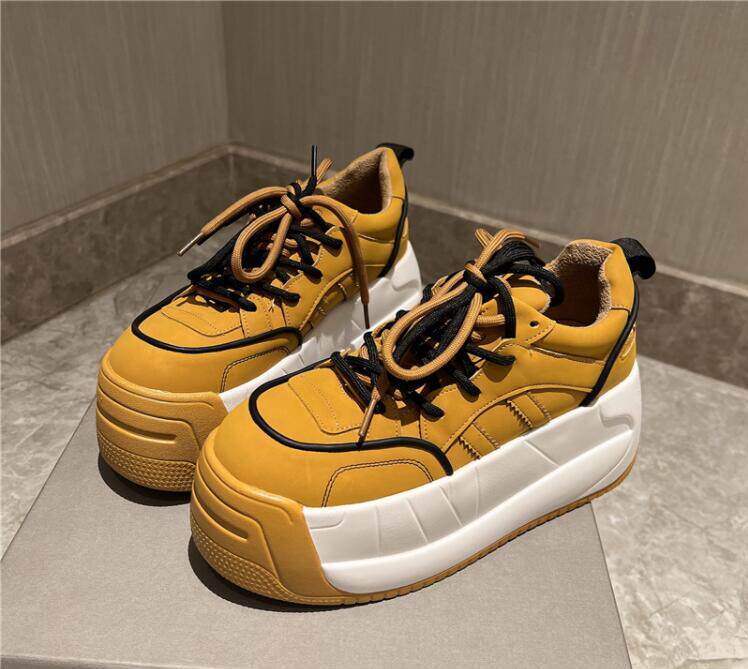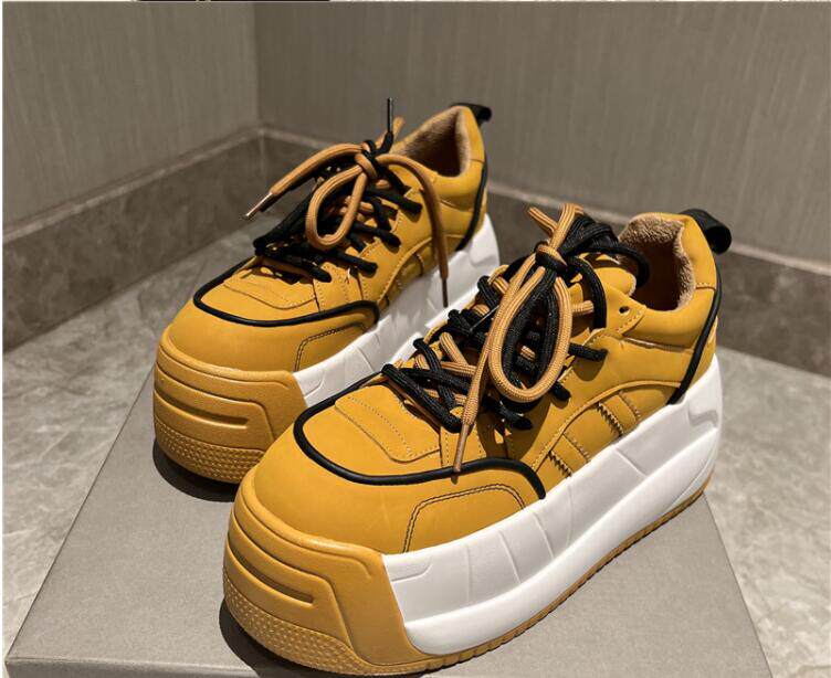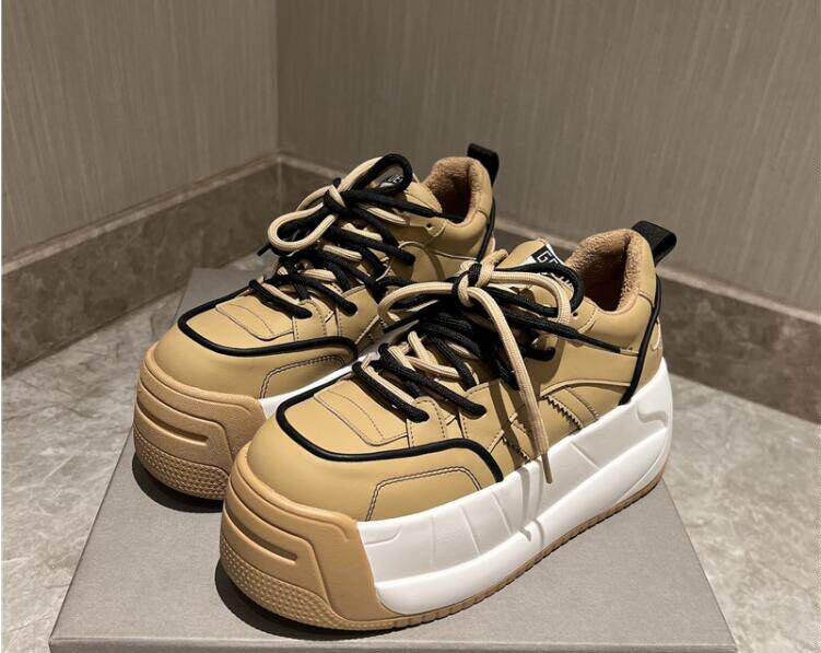 Незаметное внутреннее увеличение роста на 9 см, повседневные туфли на танкетке с цветными блоками, верхний слой из воловьей кожи, закругленный нос, толстая подошва и шнуровка 8673