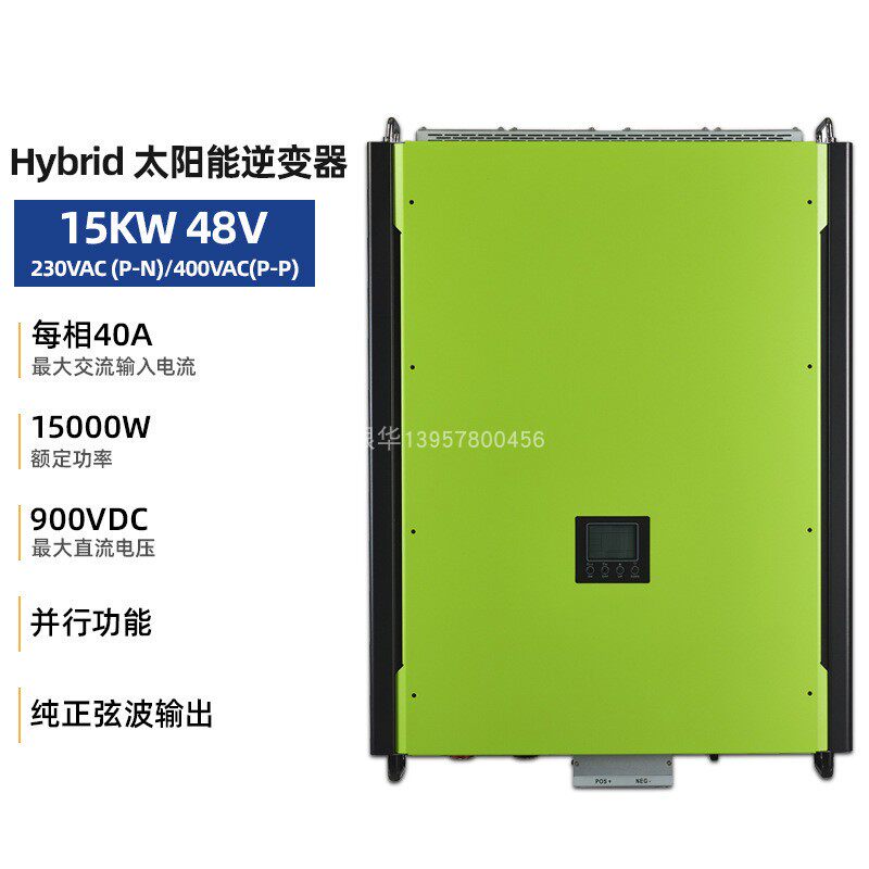 Гибридная фотоэлектрическая сетка солнечной батареи -Согласованная All -In -One Machine 15KW 48V Трехфазное время 380 В -времени -Параллельная машина зарядки и сброса.