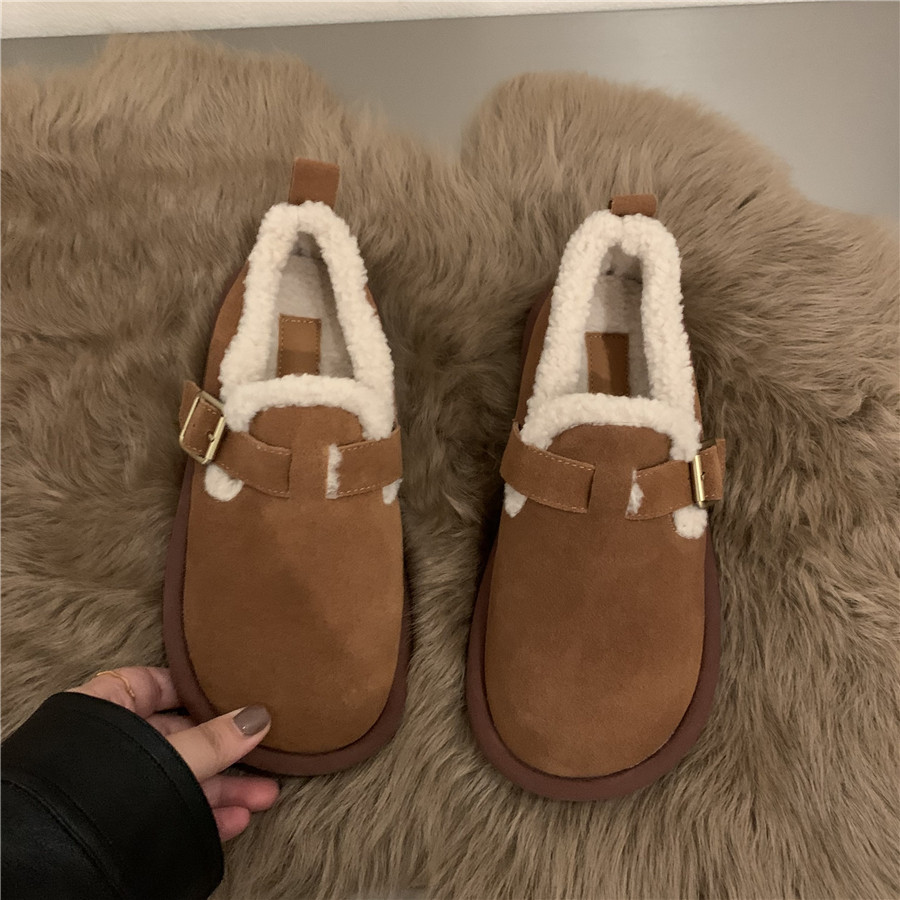 Коричневая флисовая демисезонная удерживающая тепло обувь, из натуральной кожи