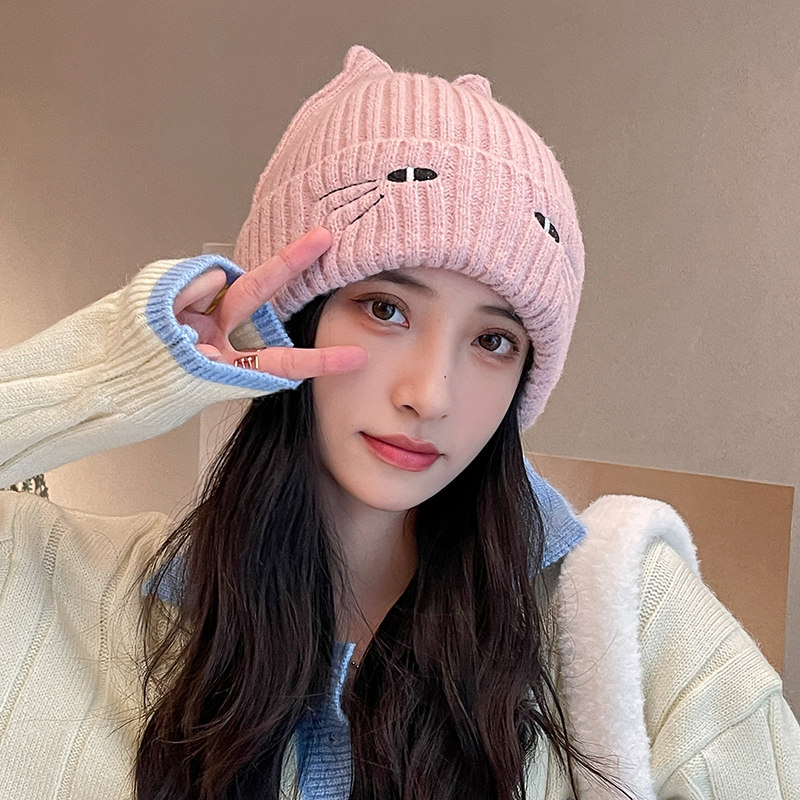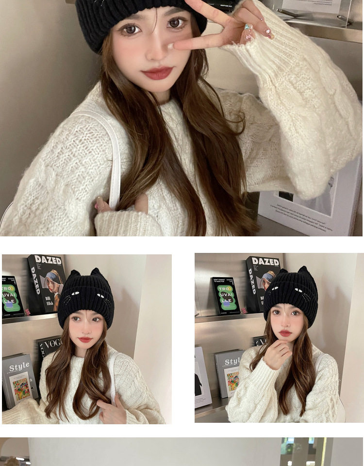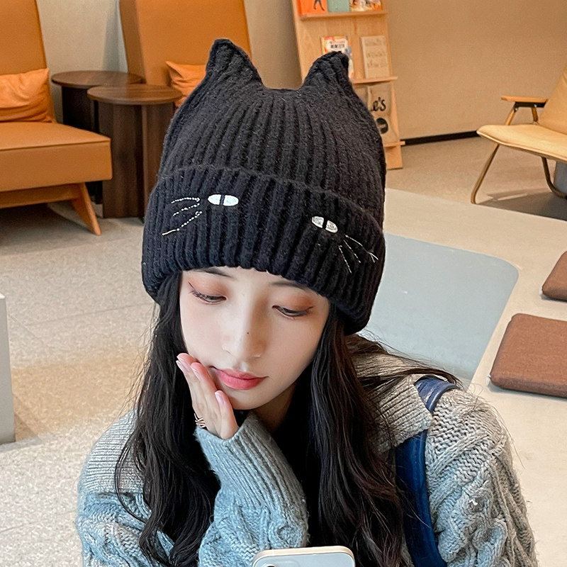 Черная цветная шерстяная милая демисезонная флисовая удерживающая тепло вязаная шапка