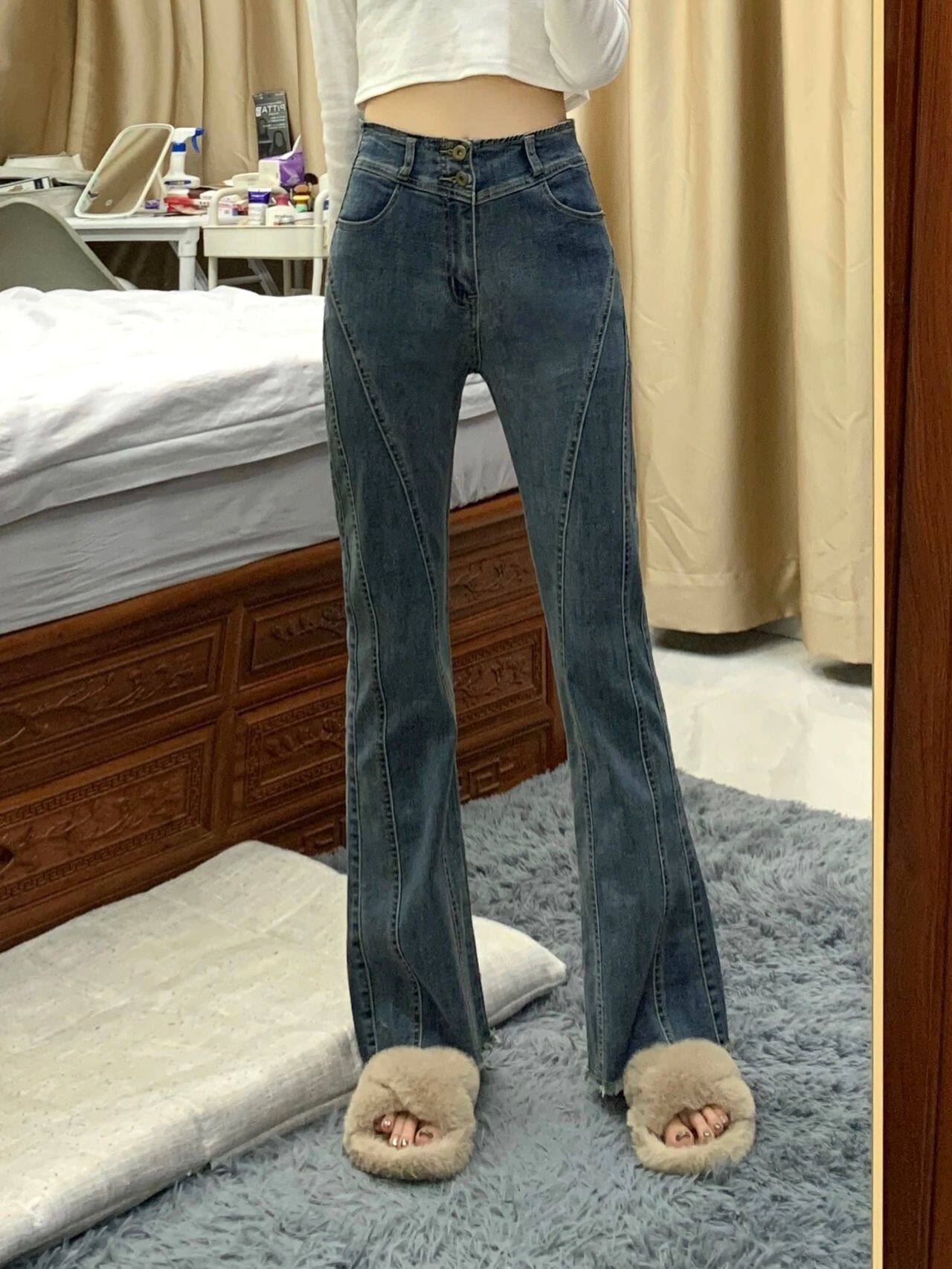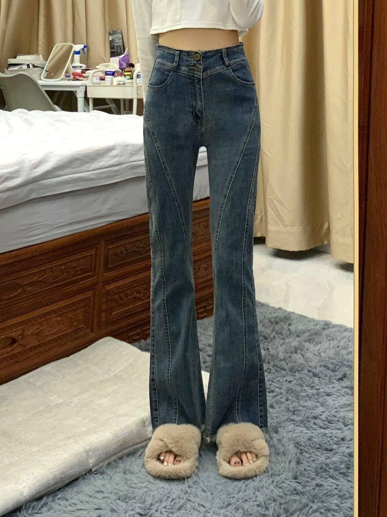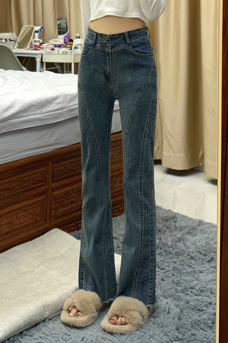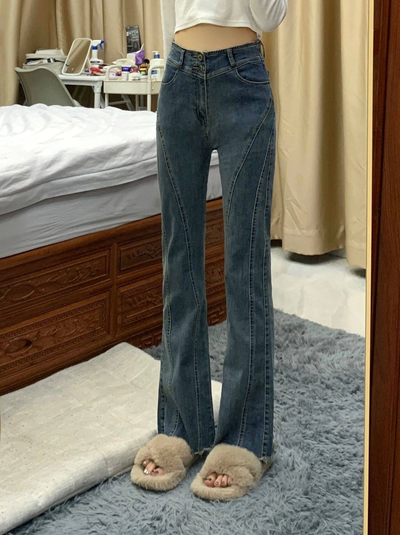 Ретро штаны-клёш, осенние штаны, дизайнерские джинсы, в американском стиле, новая коллекция, большой размер, тренд сезона, высокая талия