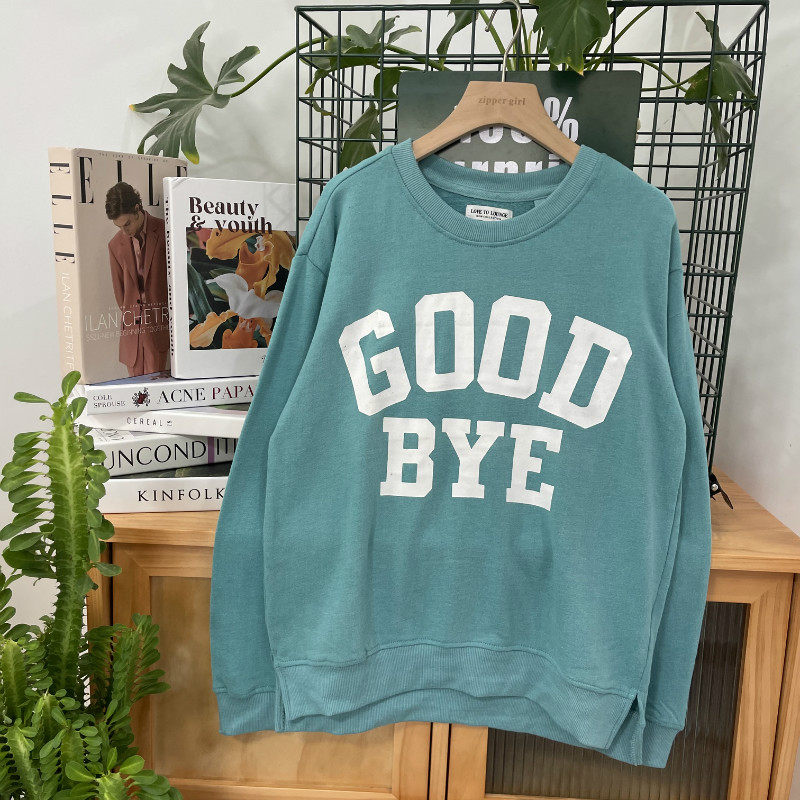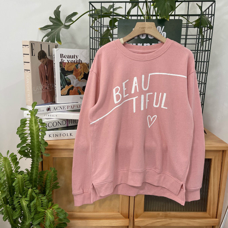 L Круглый -neck Print Split Hair Rim свитер не возвращается к двум бесплатной доставке