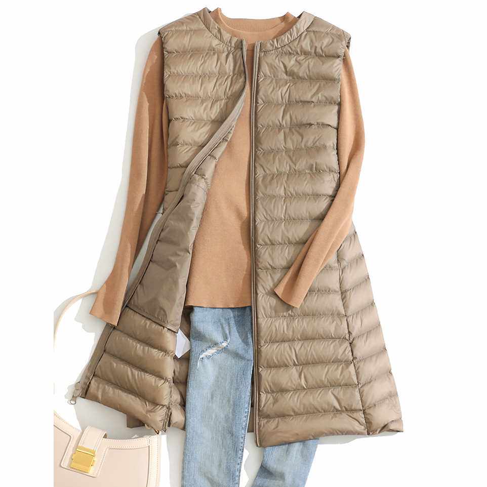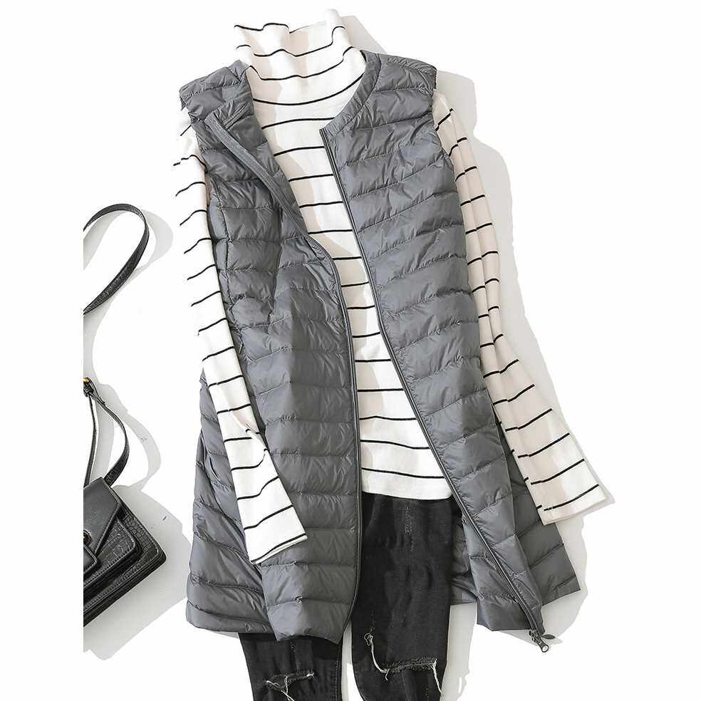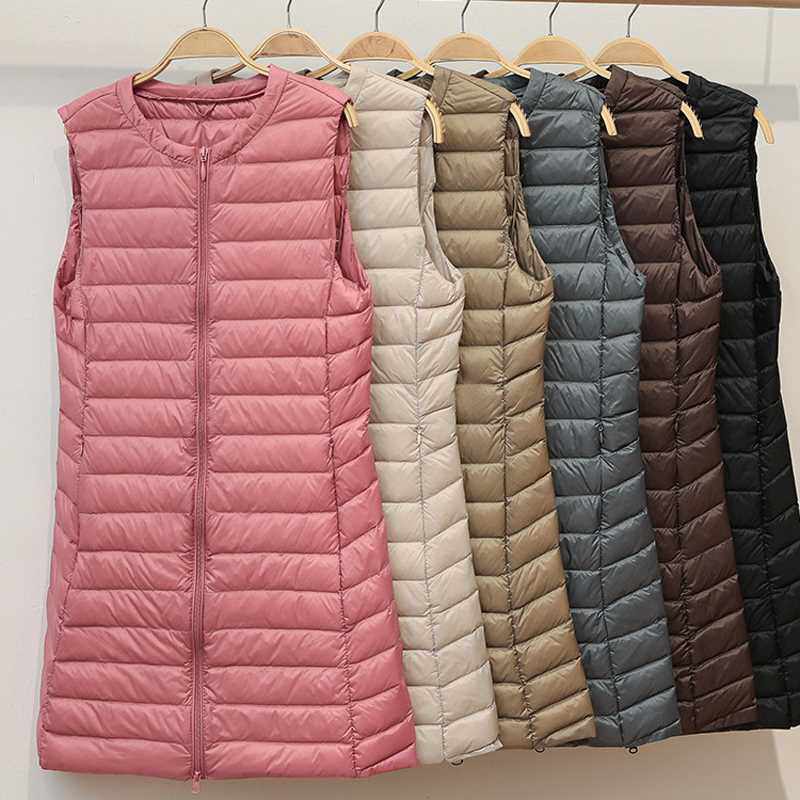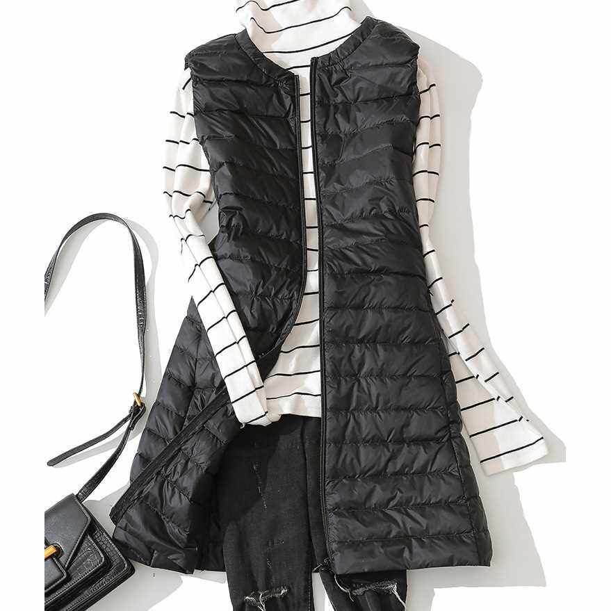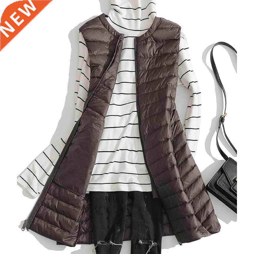 Длинная ультра освещенная пиджак Женщины без рукавов на молнии зимы