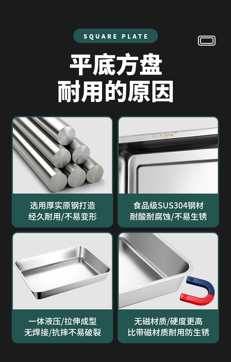 Дополнительная шасси 304 продукты питания -Крейд Прямоугольная лотка из нержавеющей стали.