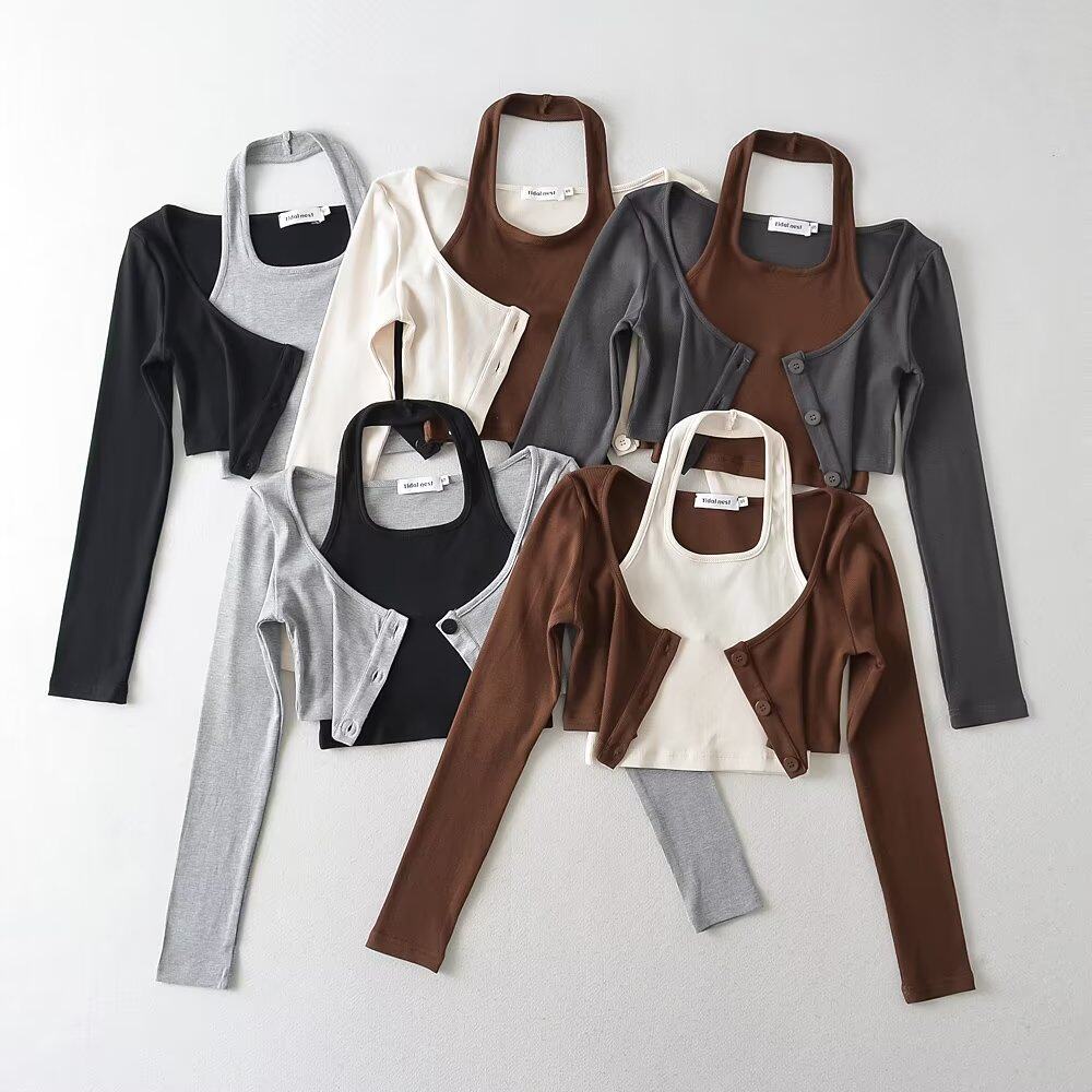 Сексуальный короткий комплект, лонгслив, европейский стиль