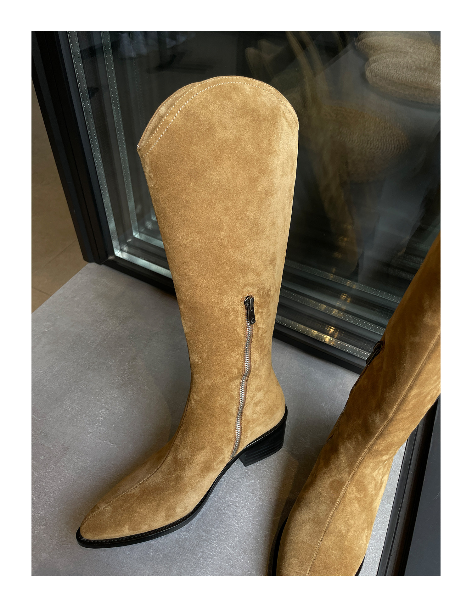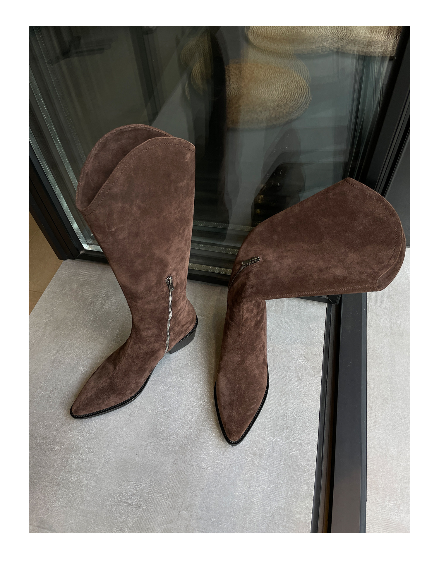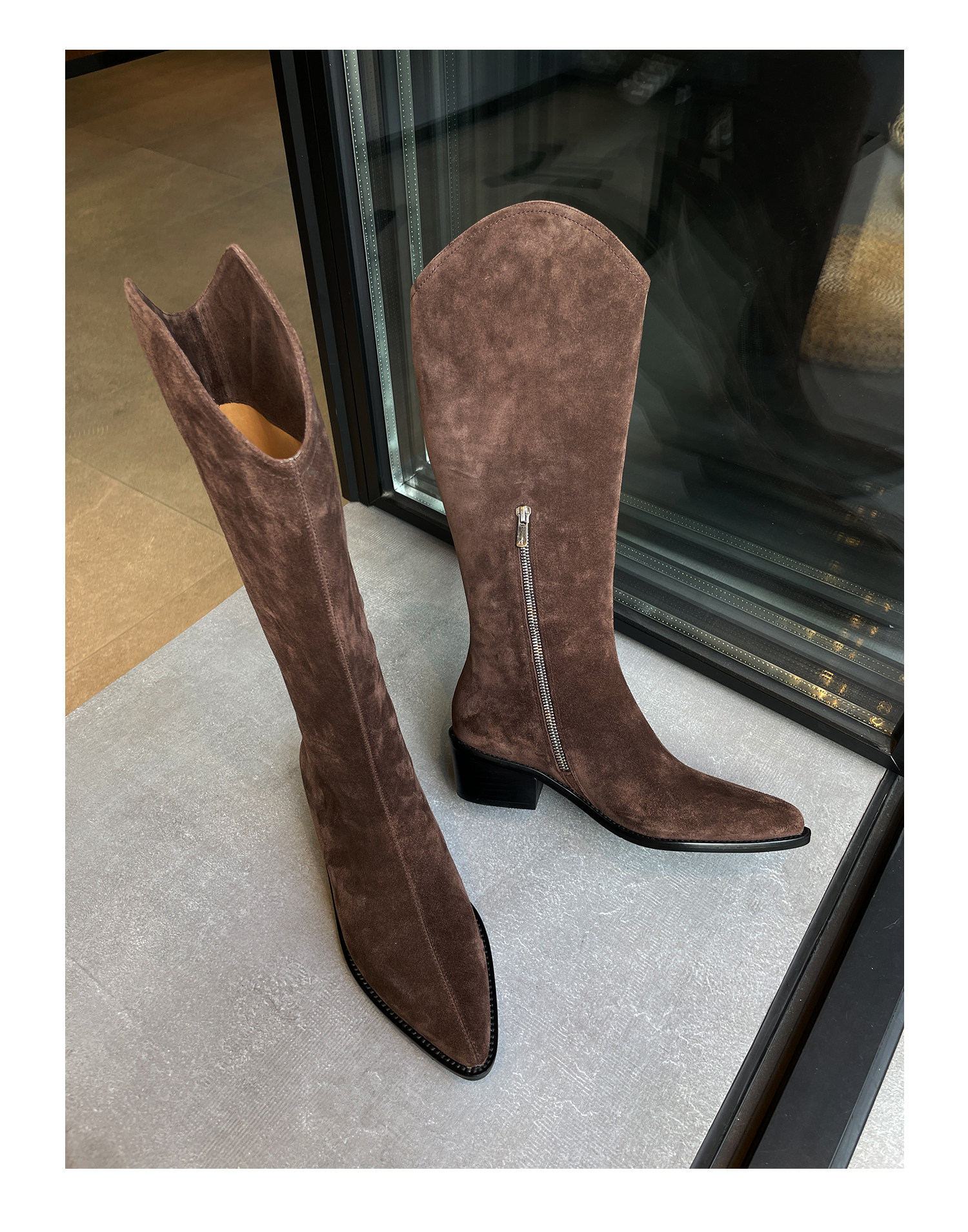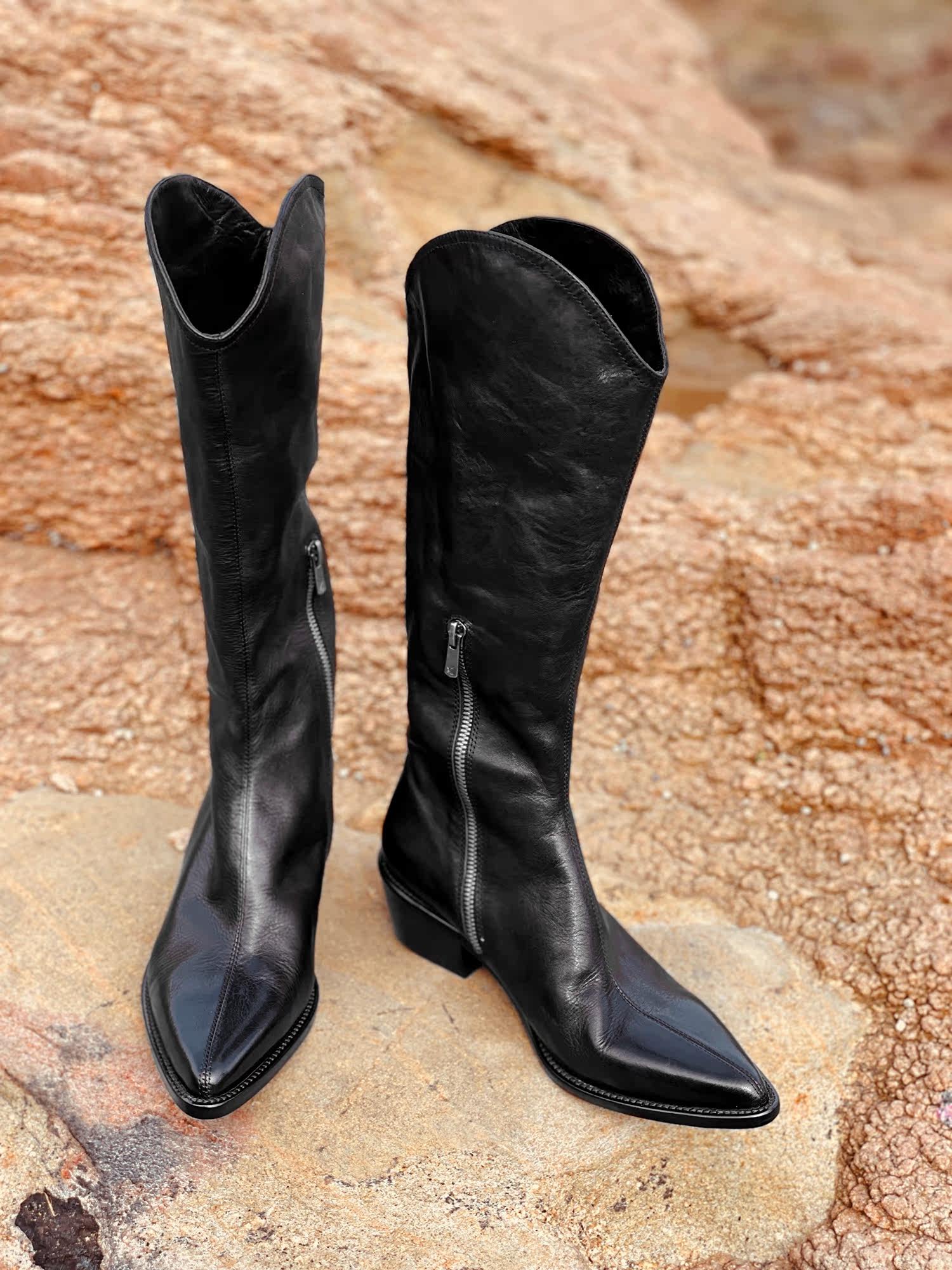 Джинсовые высокие сапоги с молнией с заостренным носом