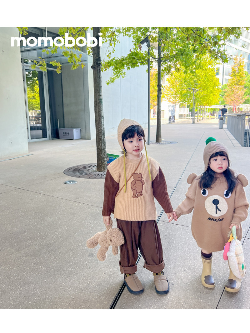 Детский комплект подходит для мужчин и женщин, милый свитер, с медвежатами, с вышивкой, в западном стиле