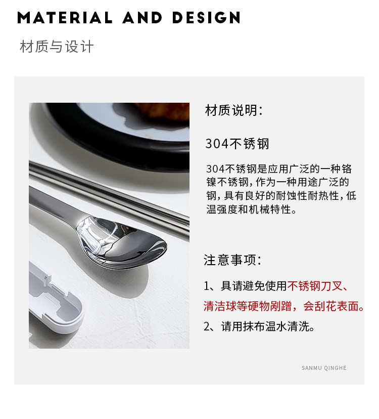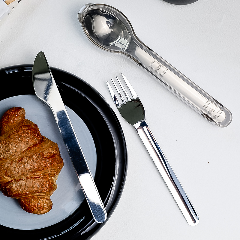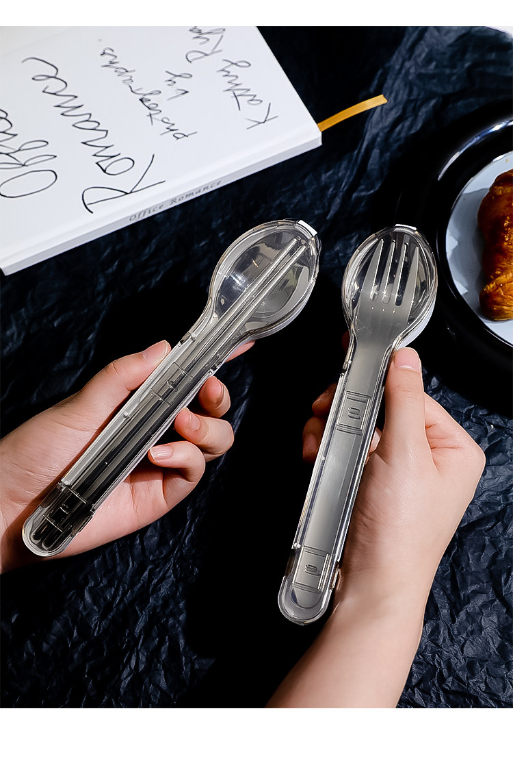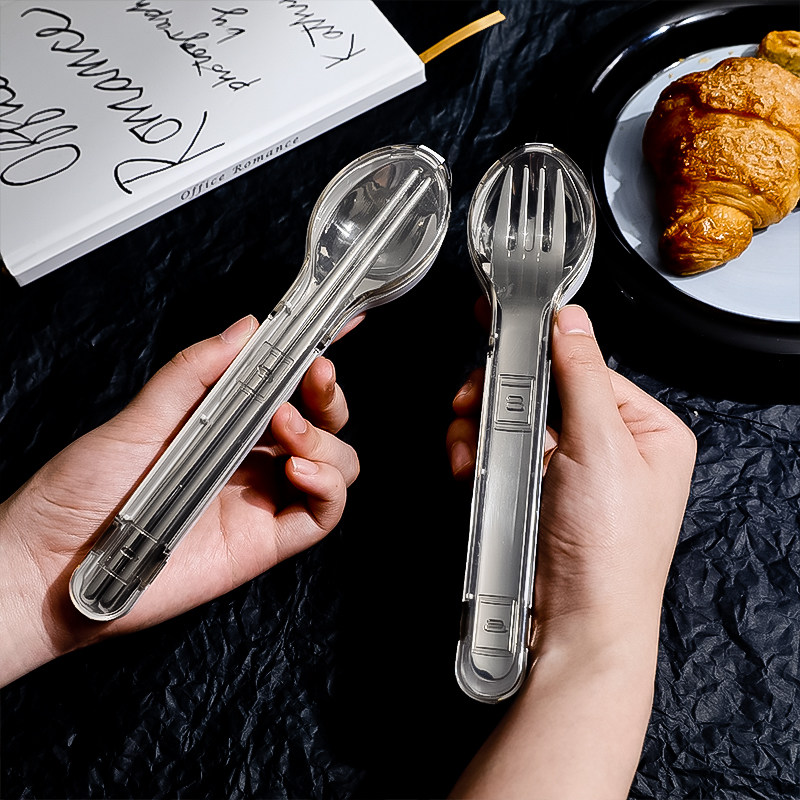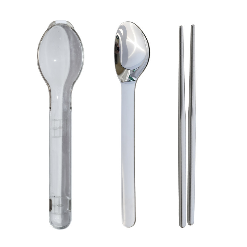 Палочки для еды из нержавеющей стали, ложка, дорожный комплект, портативная посуда для школьников и студентов, коробка для хранения, нержавеющая сталь AISI 304, 3 предмета