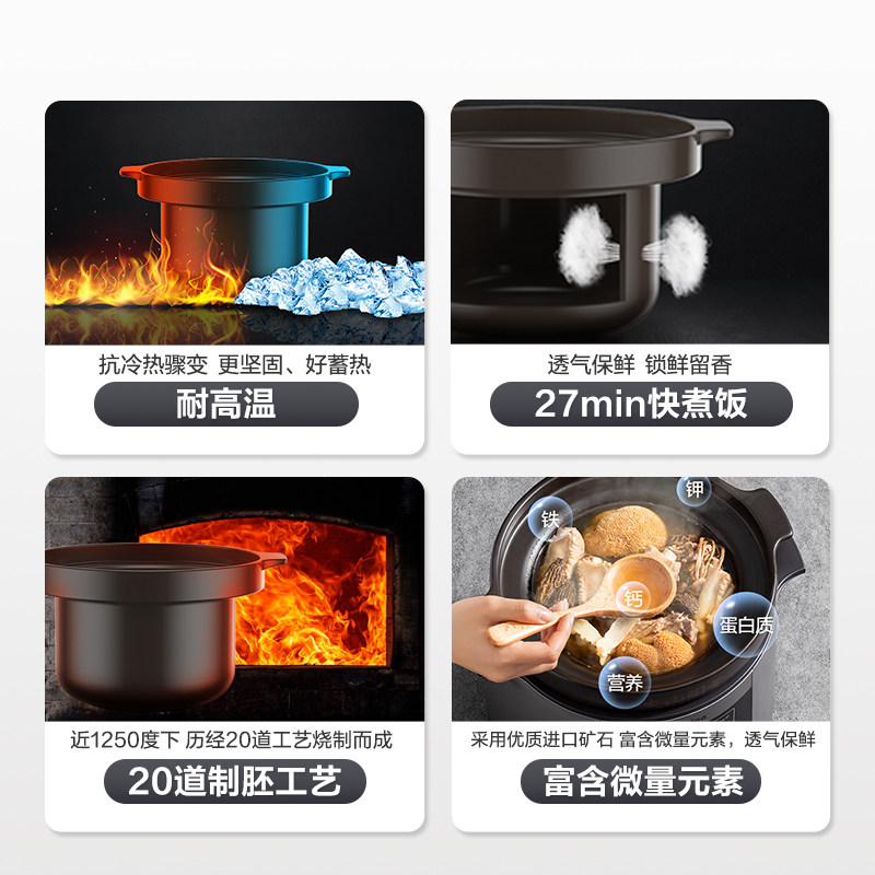Медиа -тушеное горшок, горшок с птичьим гнездом, домашняя большая мощность Полностью автоматическая суповая горшка Керамическая кара.