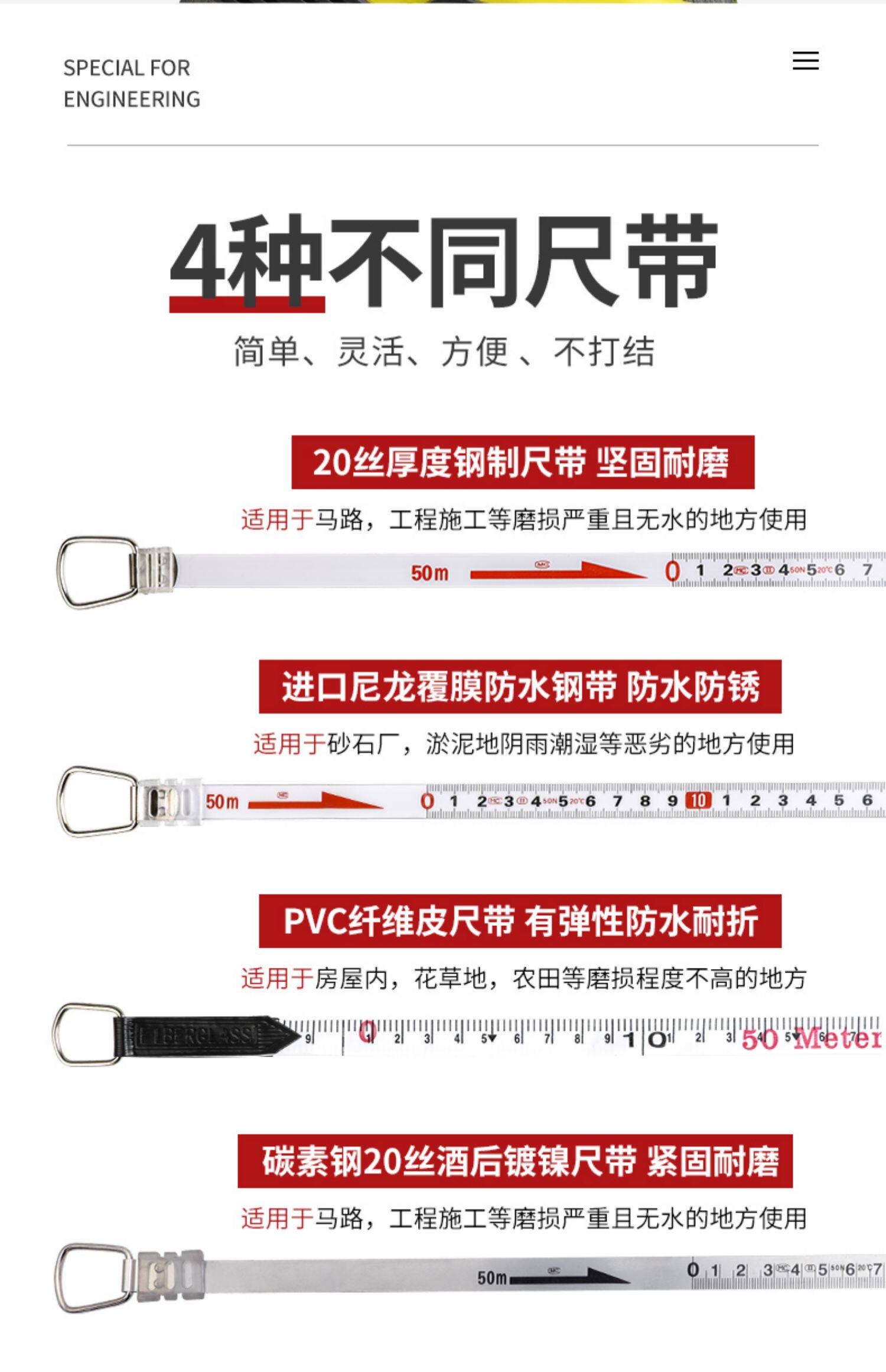- Нейлоновая водонепроницаемая стальная линейка (100 метров) [Специальность внутренних и вне -комнатных строительных площадок влажности и воды]