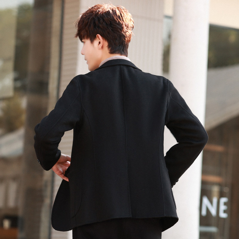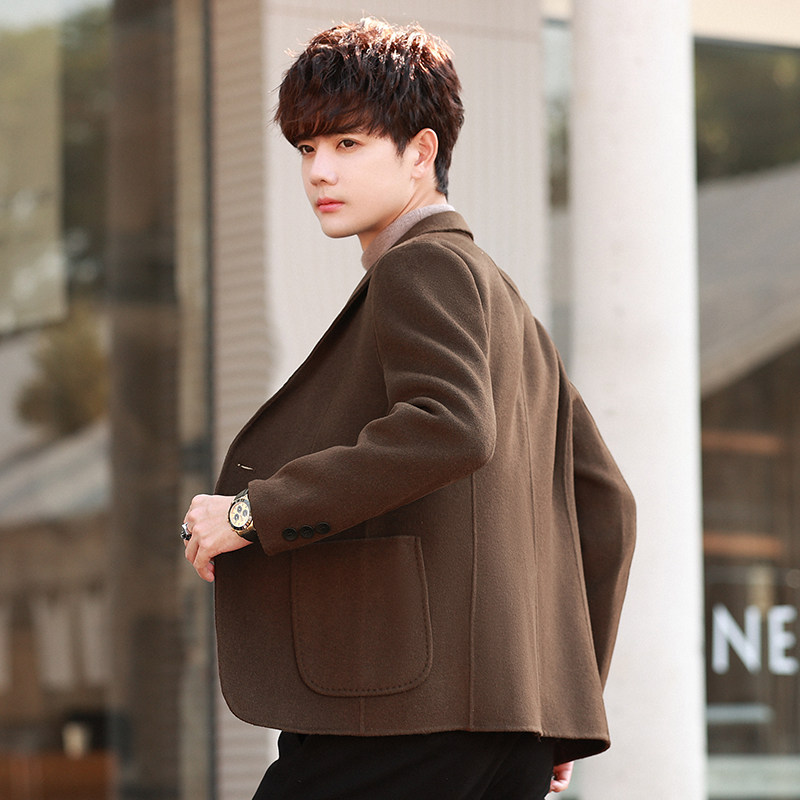 Двусторонний мужской костюм для отдыха, кашемировое бархатное шерстяное демисезонное шерстяное пальто, облегающий крой, в корейском стиле, увеличенная толщина