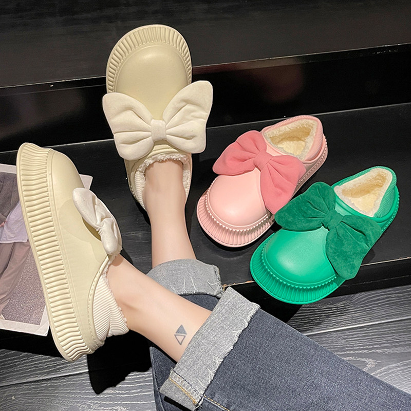 Милая демисезонная обувь с бантиком, напяточники, водонепроницаемые тапочки на платформе, сапоги