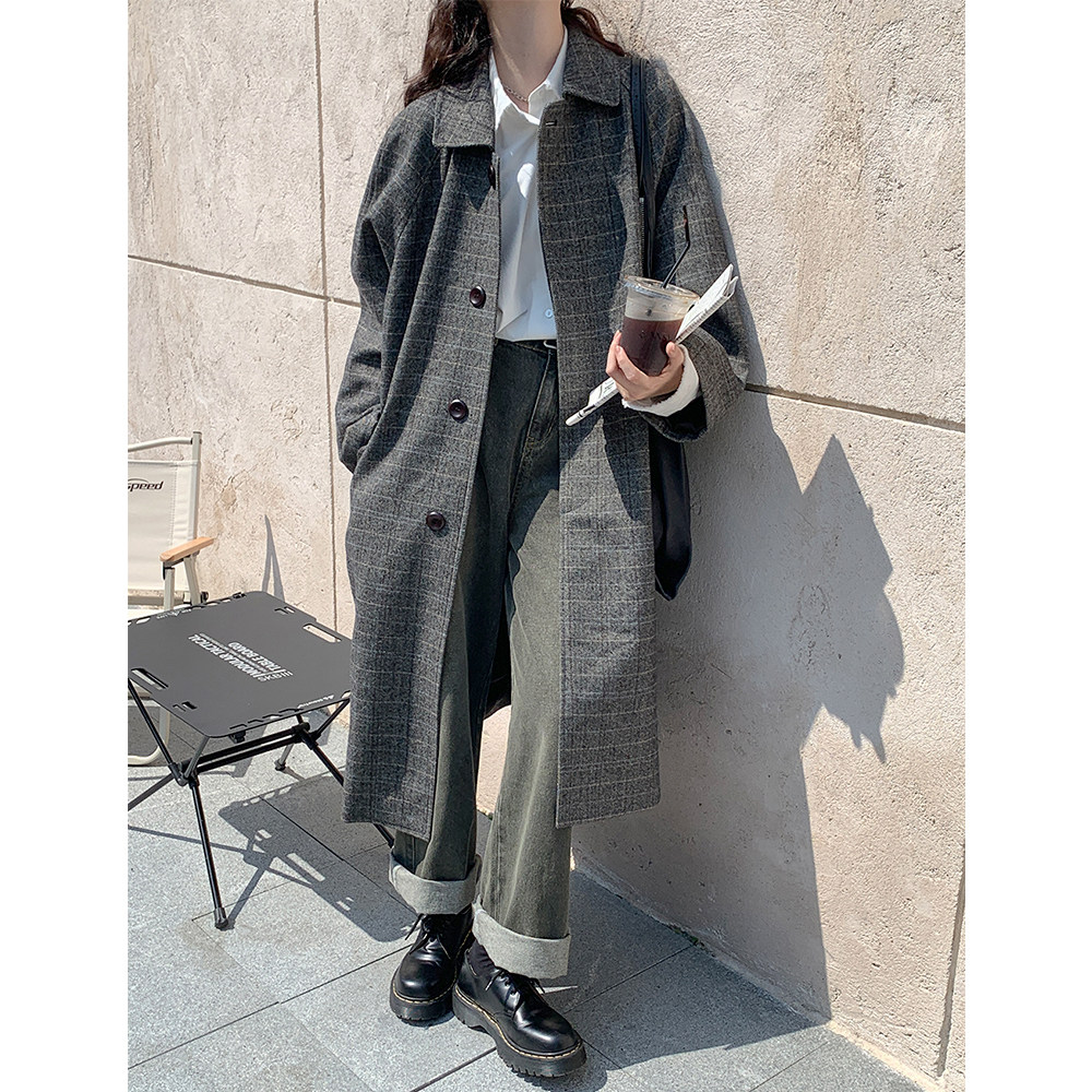 Шерстяное пальто, демисезонная длинная куртка, свободный крой