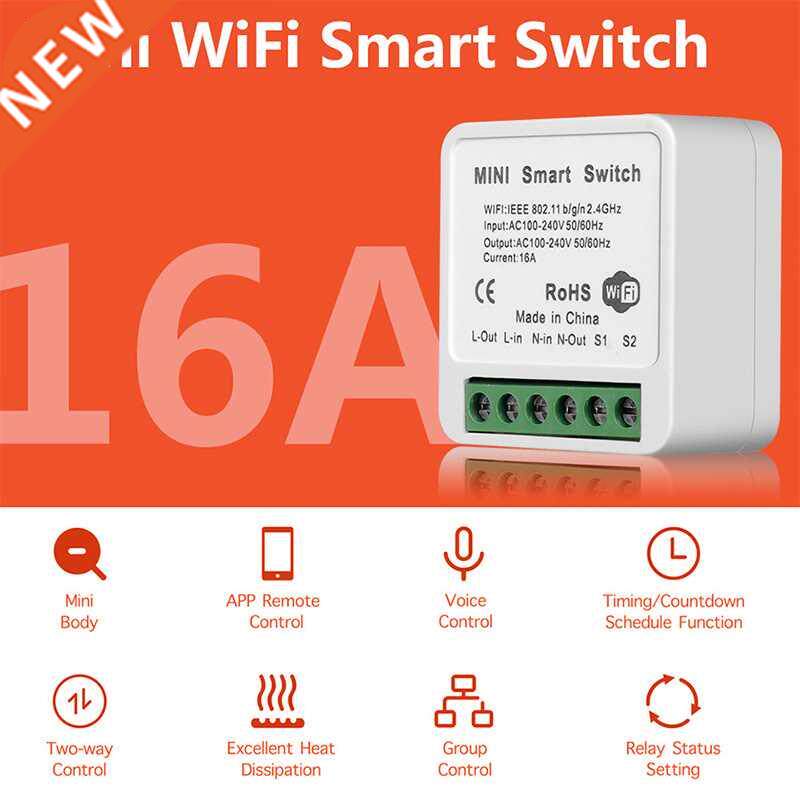 16A Smart Mini Mini Wi-Fi Switch 2-way Control Smart Home Vo