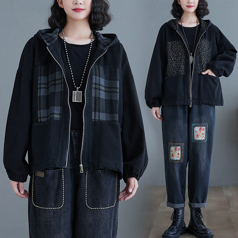 Толстовка с капюшоном, лонгслив, джинсовая куртка, большой размер, свободный крой