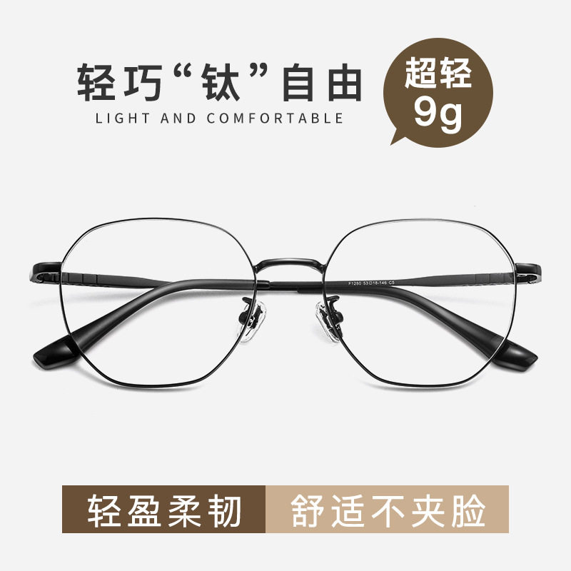 Полигональный чистый титановый школьной стекла Рамки для мужчин и женщин Студенты Молодежь Ультра -светлый титановый полка может соответствовать цифровому металлическому зеркальному рамке