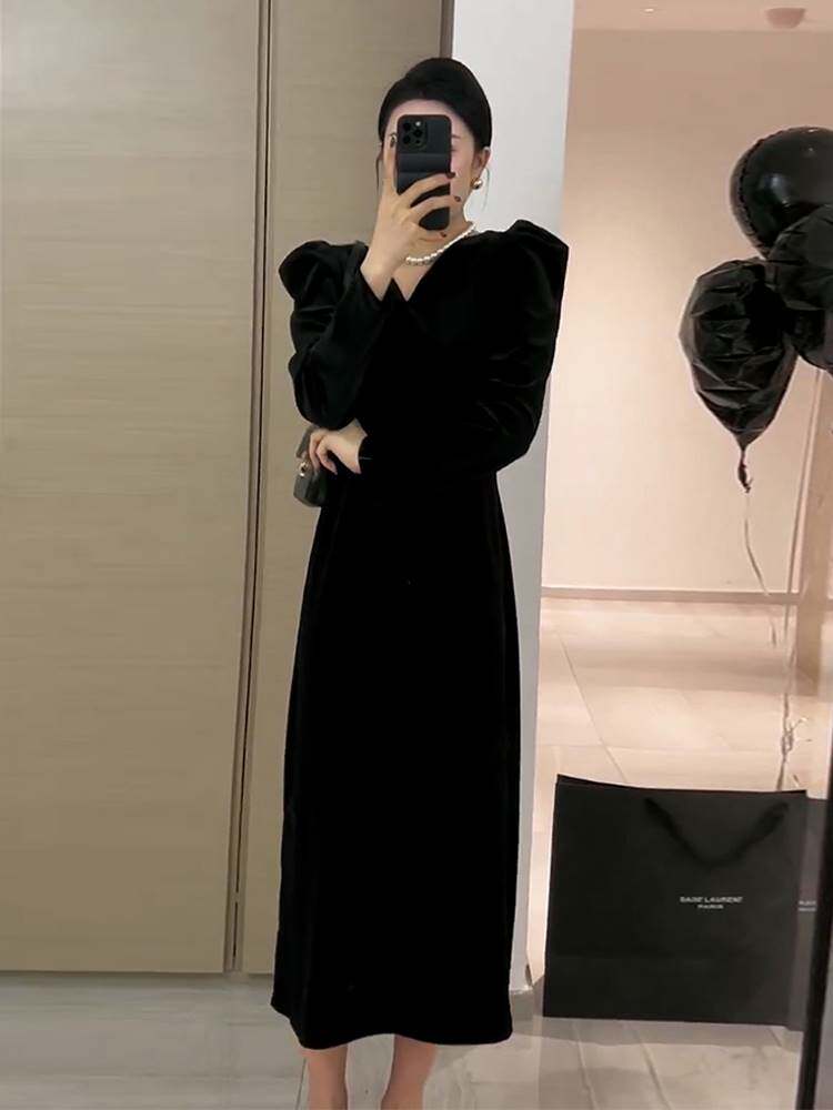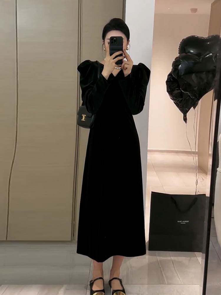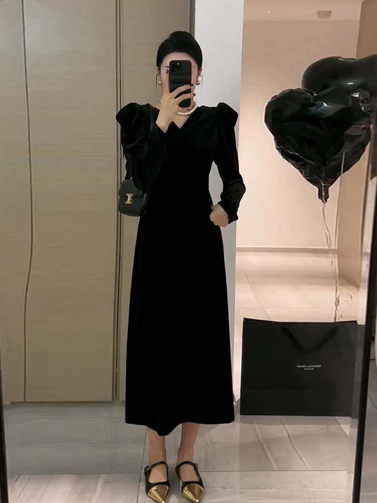 Весеннее черное платье, французский стиль, яркий броский стиль, изысканный стиль