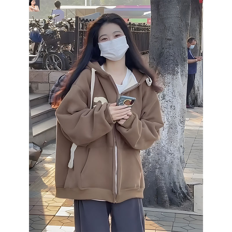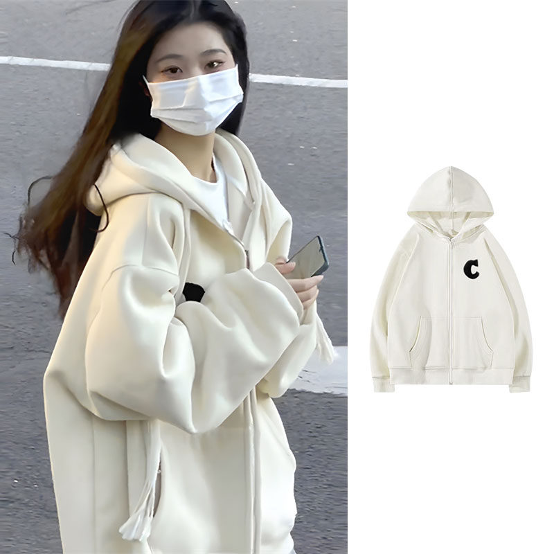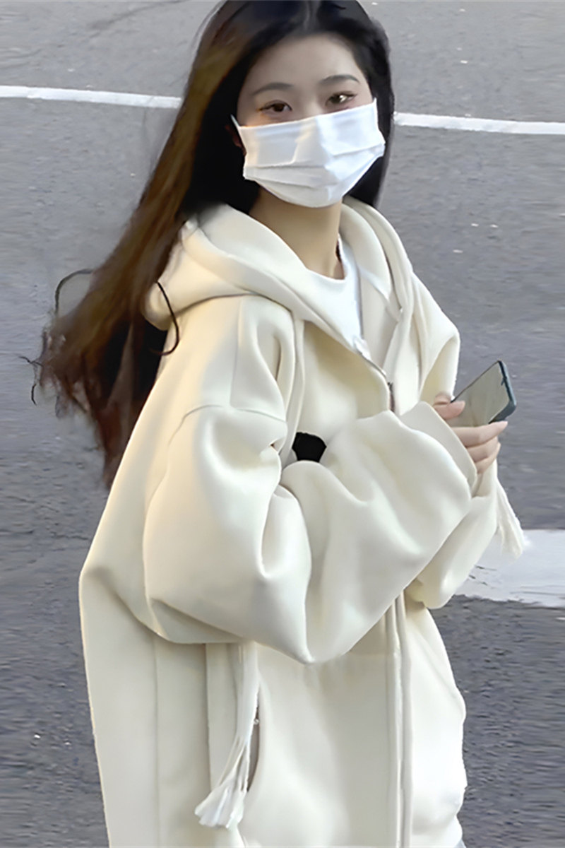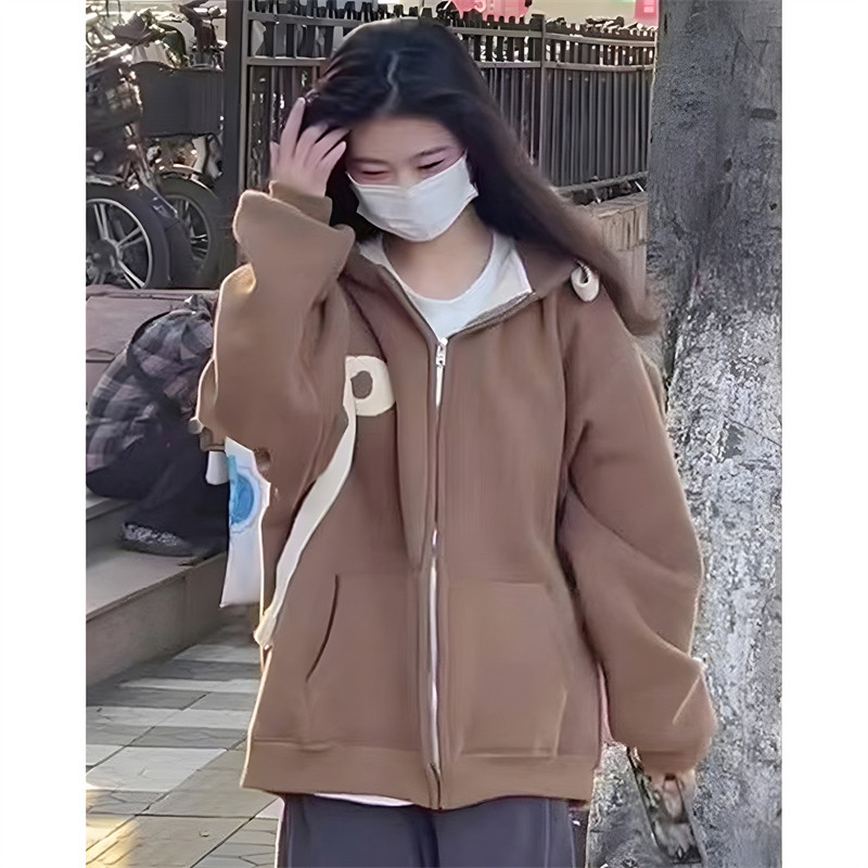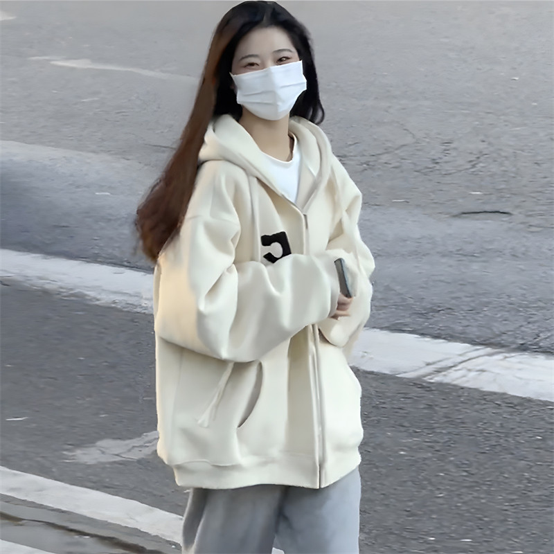 Tide, абрикосовая осенняя утепленная толстовка с молнией, длинная куртка, в американском стиле, свободный крой, средней длины