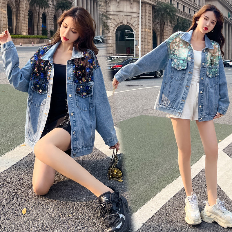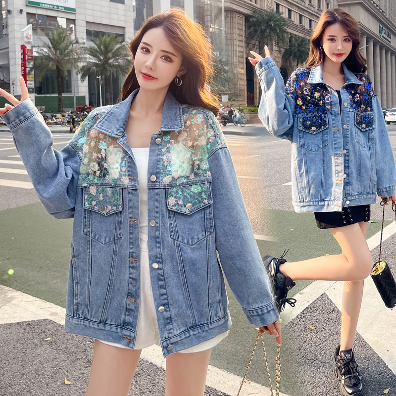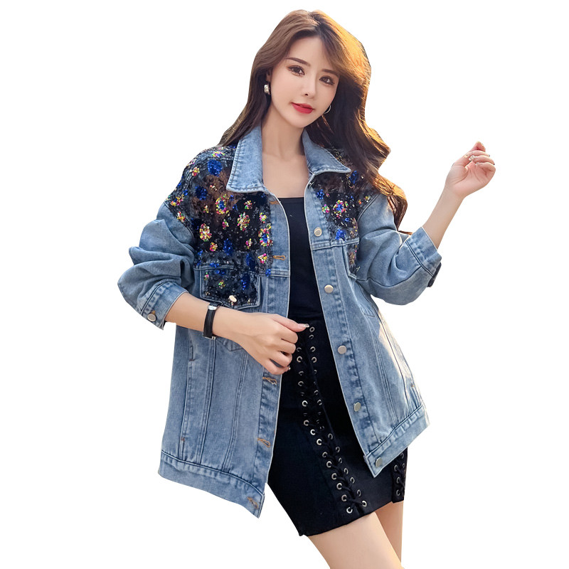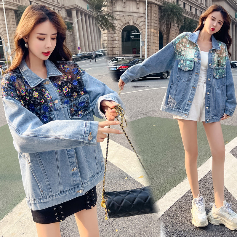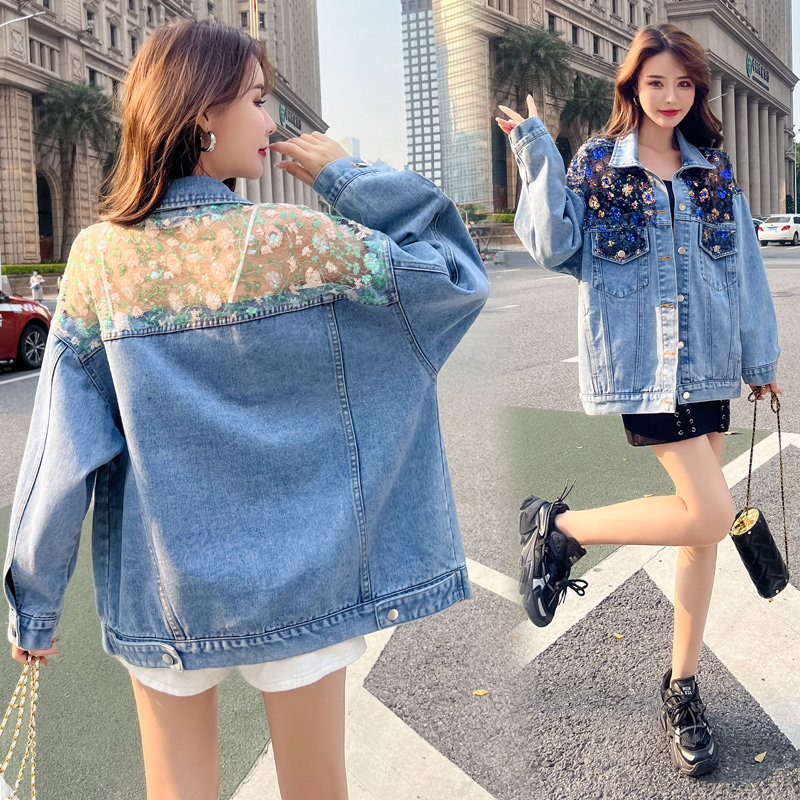 Джинсовая осенняя кружевная куртка, большой размер, свободный крой