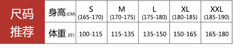 | Размер: | В пределах 100 фунтов от XS, S 165/Вес 100-115, М 170/Вес 115-135, L 175/Вес 135-150, XL 180/Вес 150-165, XXL 185/Вес 165-180 |