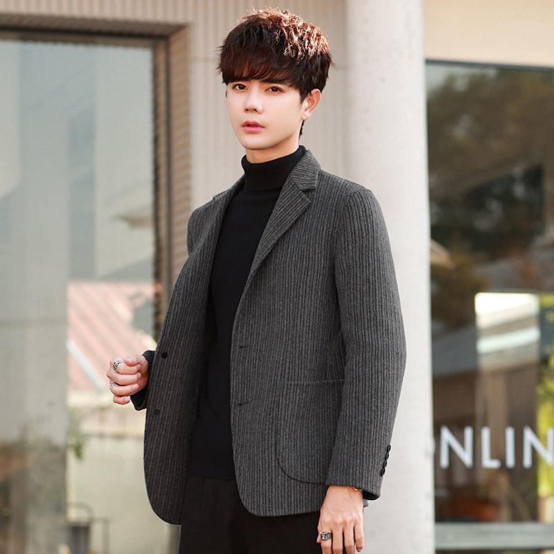 Демисезонный комплект для отдыха, шерстяная двусторонная куртка, пиджак классического кроя, облегающий крой, в корейском стиле