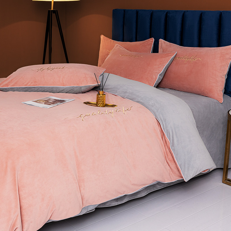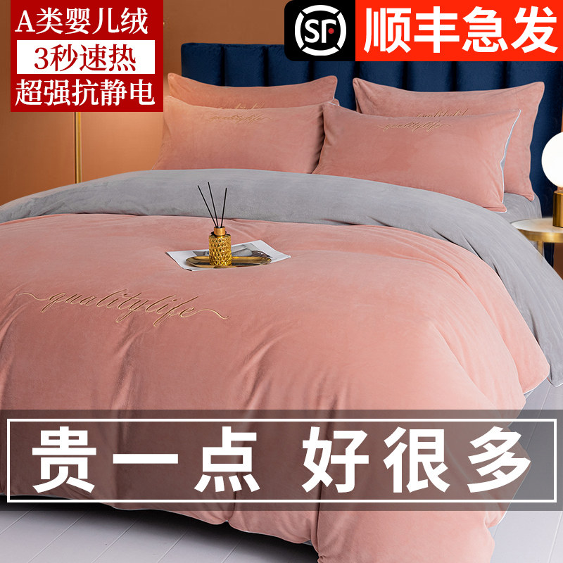 Утепленный зимний коралловый пододеяльник, фланелевый комплект, коллекция 2022, 4 предмета