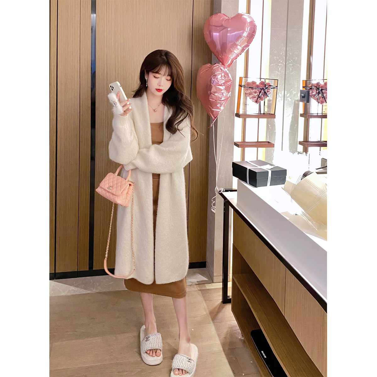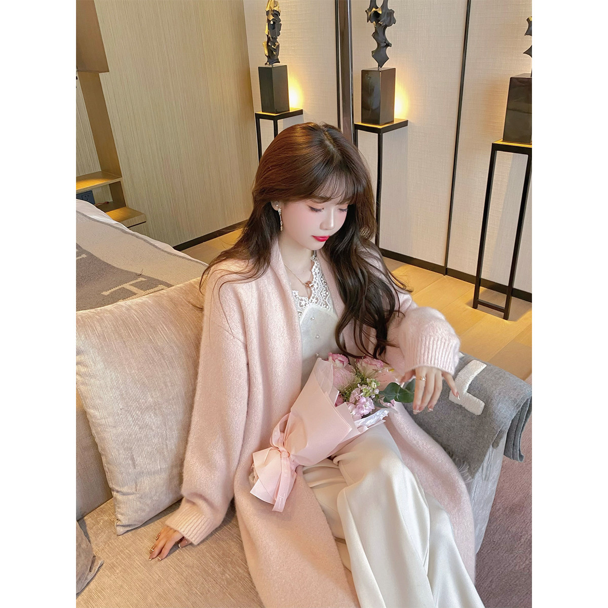 Белое шерстяное демисезонное пальто, куртка, свитер, длинный трикотажный кардиган, изысканный стиль, коллекция 2022