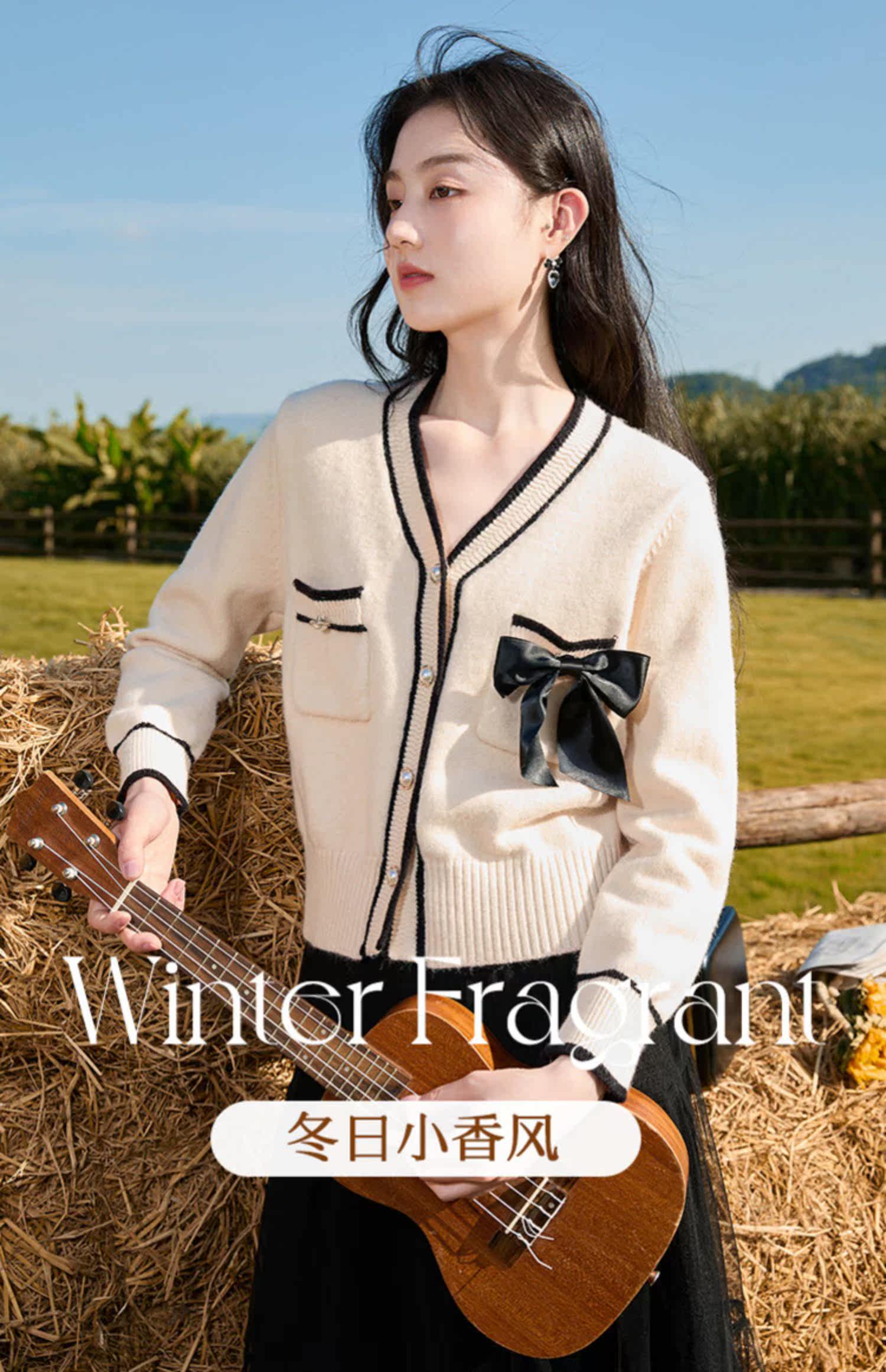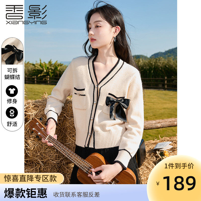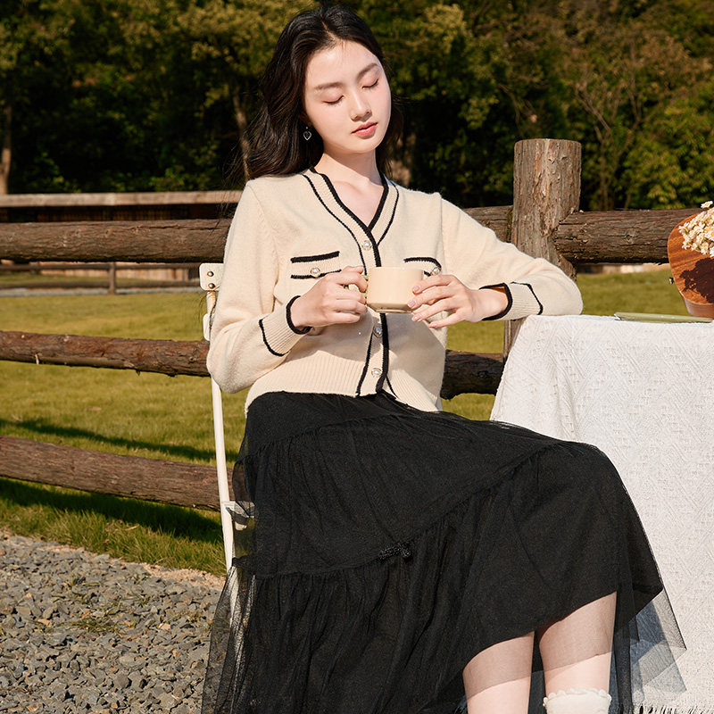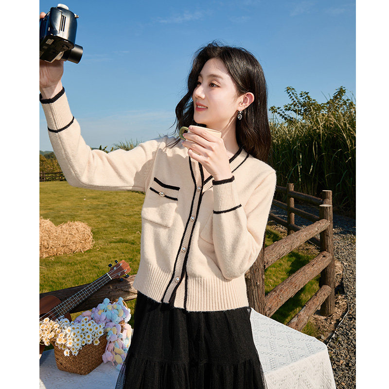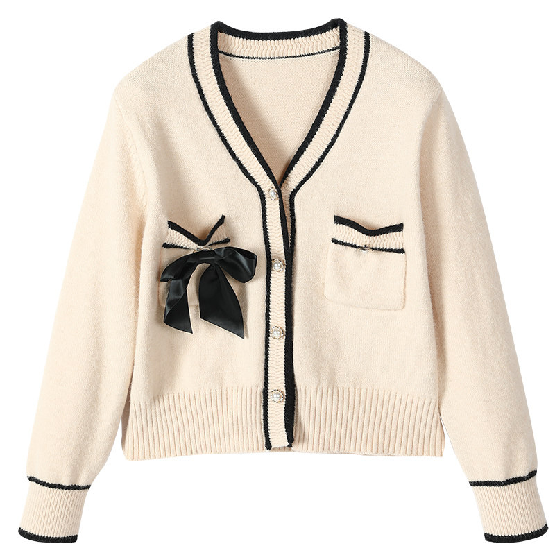 Демисезонный кардиган, короткий свитер, куртка, лонгслив, французский стиль, V-образный вырез, в стиле Шанель