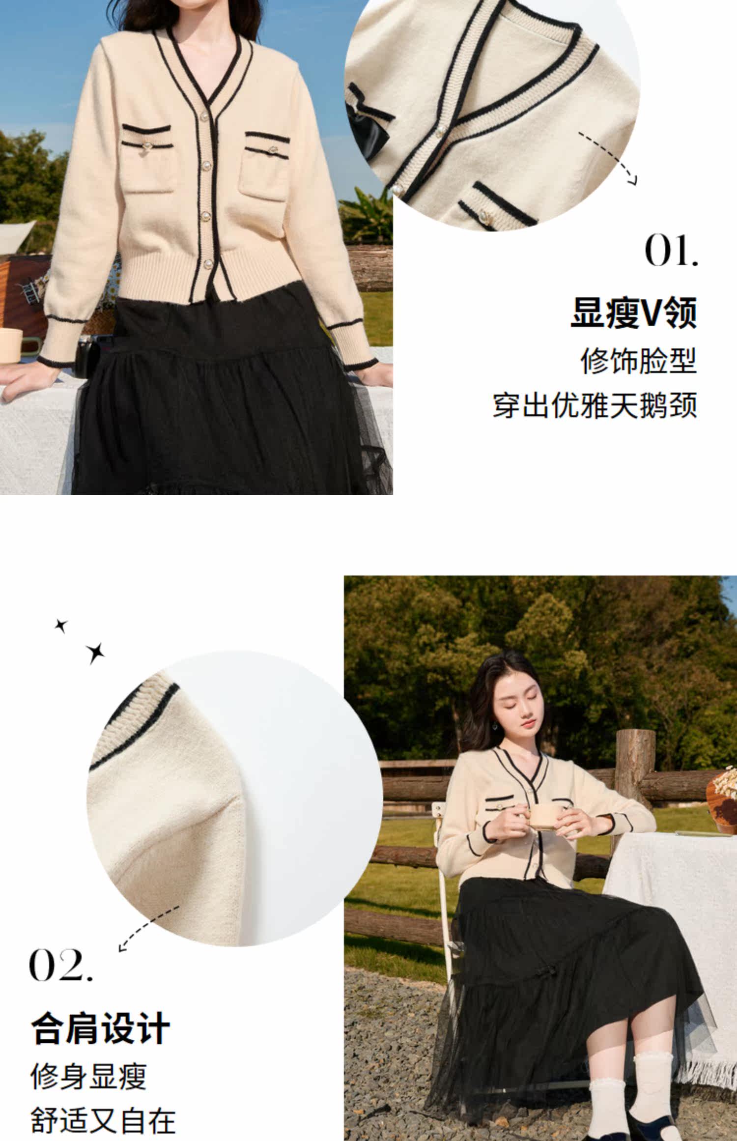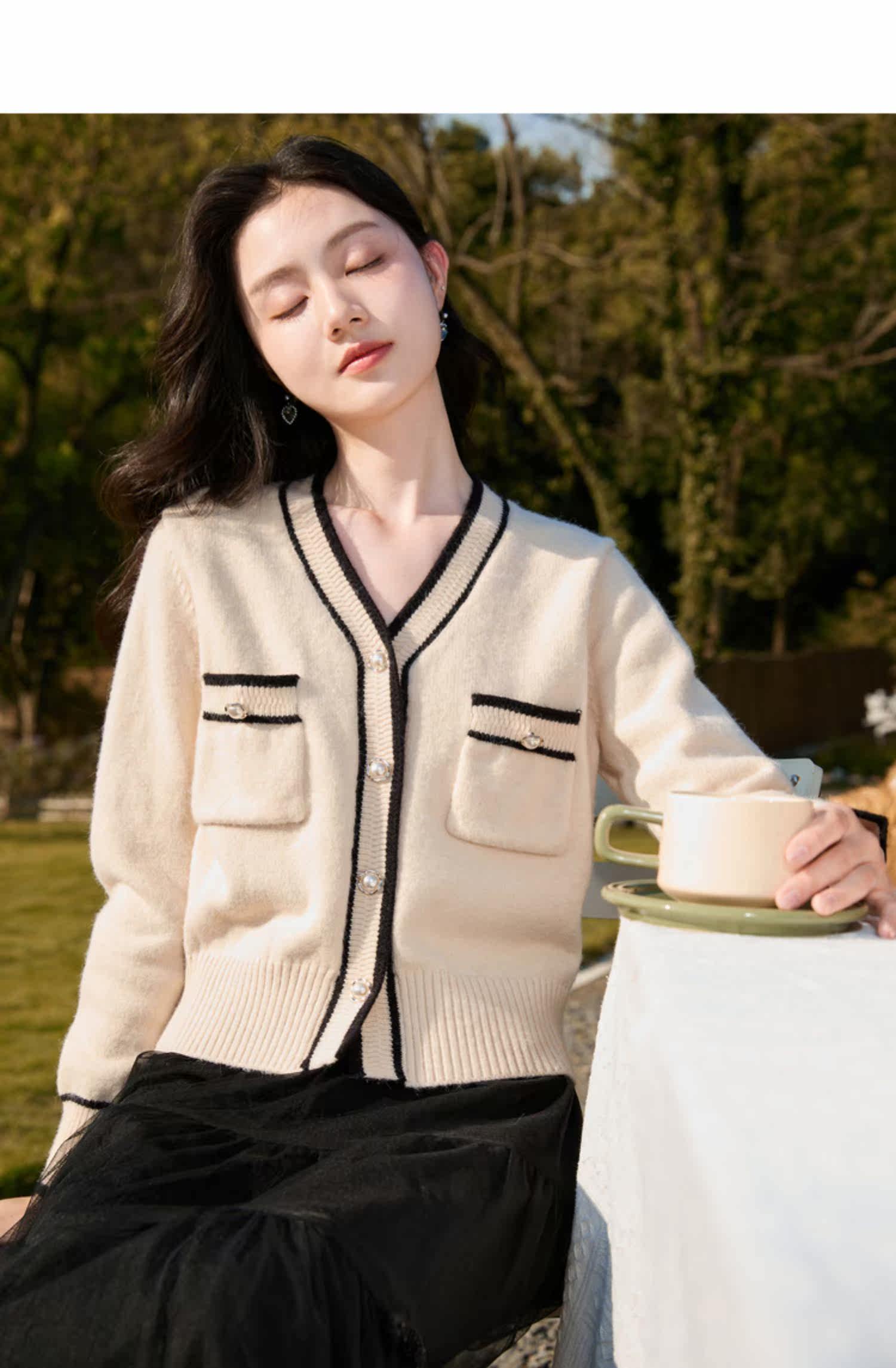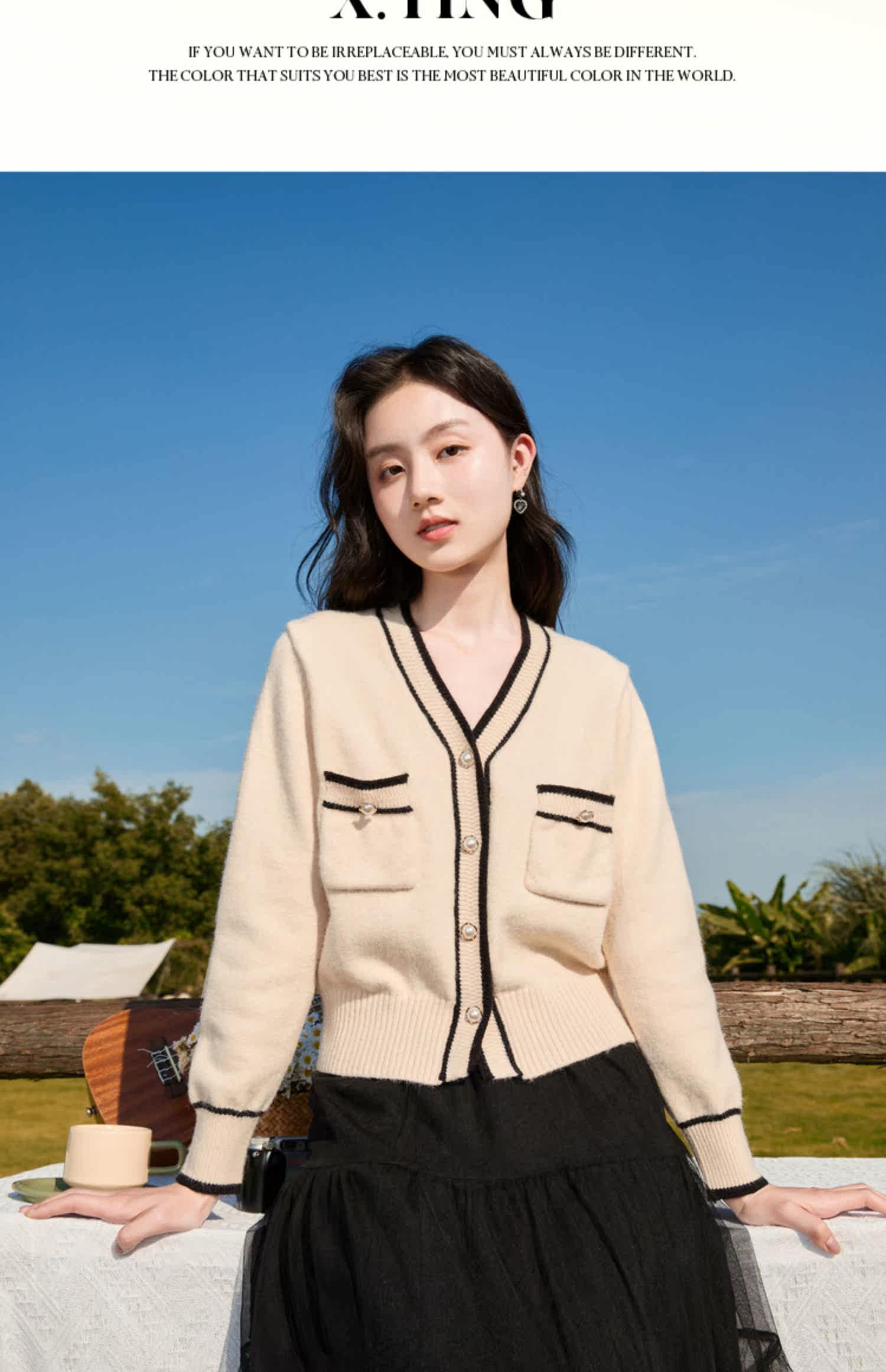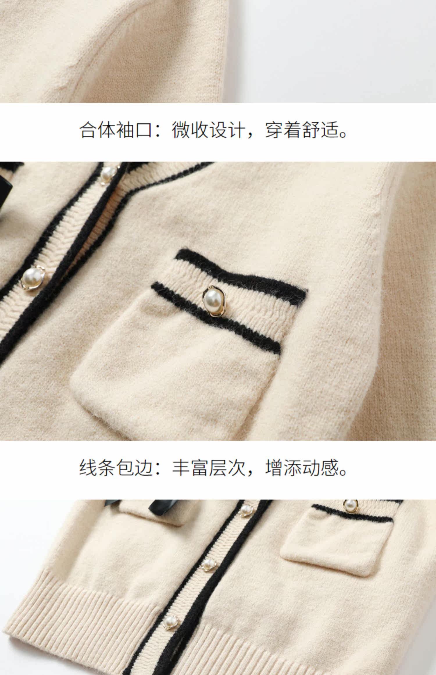 Демисезонный кардиган, короткий свитер, куртка, лонгслив, французский стиль, V-образный вырез, в стиле Шанель