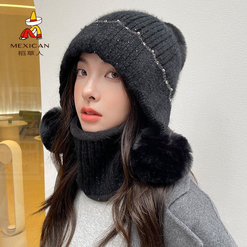 Удерживающая тепло модная универсальная милая шерстяная вязаная шапка, шарф, шарф-платок, комплект