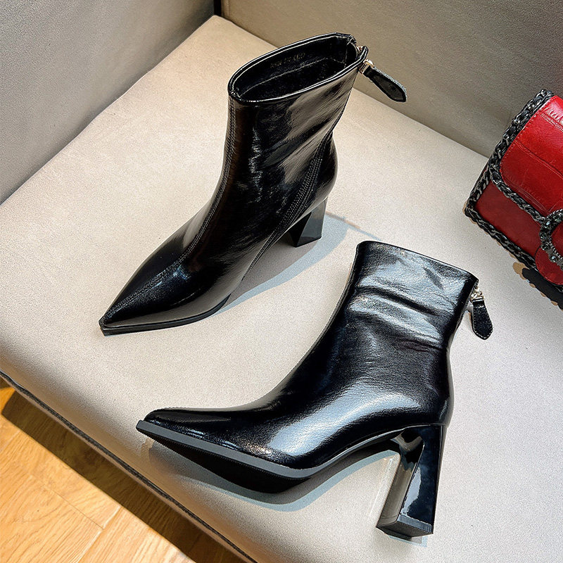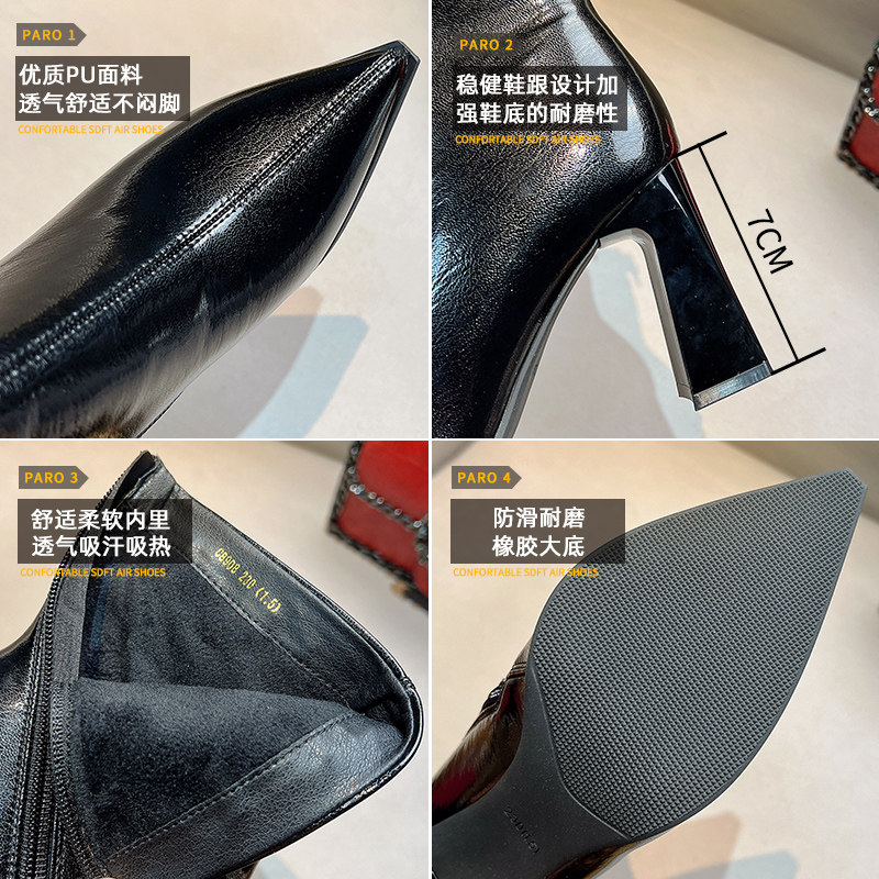 Демисезонные сетчатые высокие короткие сапоги с заостренным носом с молнией, популярно в интернете, по фигуре
