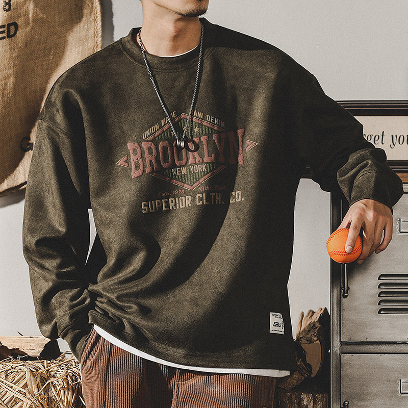 Ретро весенняя толстовка, бархатная футболка, в американском стиле, оверсайз