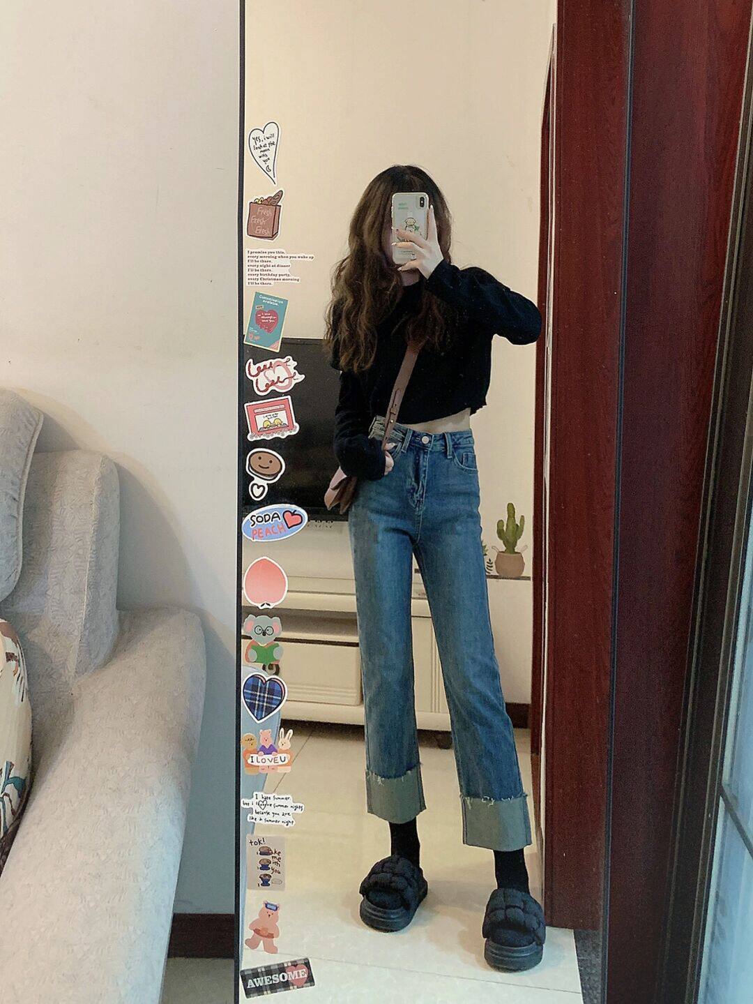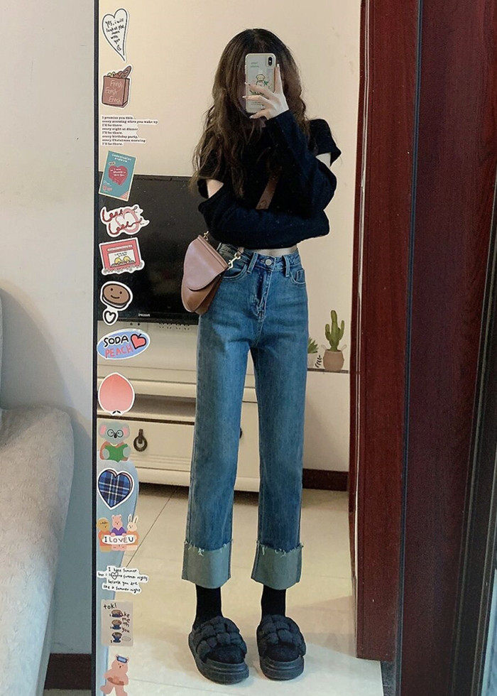 Ретро осенние прямые свободные джинсы, демисезонные штаны, высокая талия, подходят для подростков, большой размер