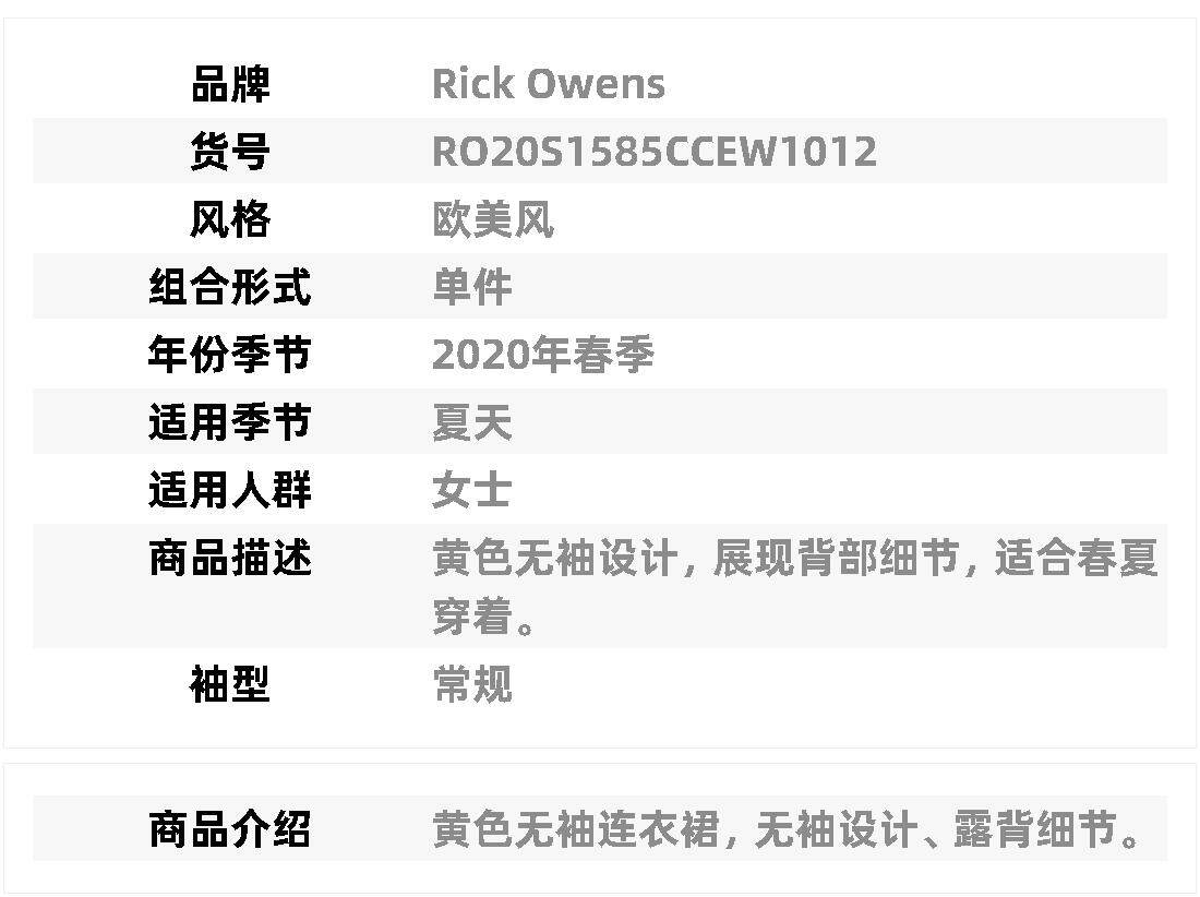 Возврат в течение 1 часа, прямая почтовая рассылка в Гонконге Платье без рукавов Rick Owens RO20S1585CCEW1012