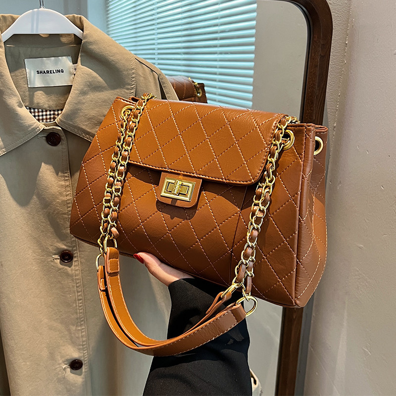 Цепь с ромбовидным узором, модная сумка через плечо, вместительная и большая сумка на одно плечо