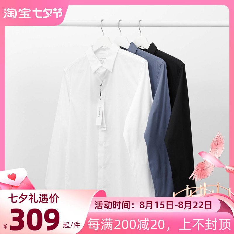 US версия Calvin Klein Business Casual -Long -Sleeved Men Men Ck вышитая рубашка пуговица сплошной топ